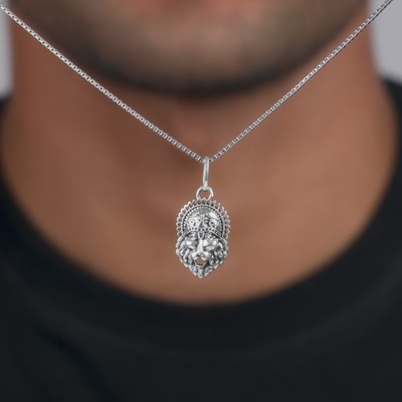 Oxidised Silver Narasimha Crown Pendant With Box Chain For Him
