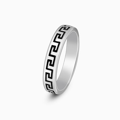 This oxidised silver ring for men features a Greek Key pattern engraved on the band.