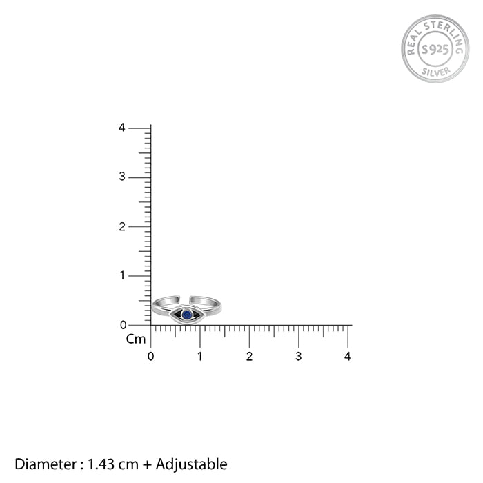 These oxidised silver toe rings for women feature an adjustable design with an eye motif and a coloured stone at the centre.
