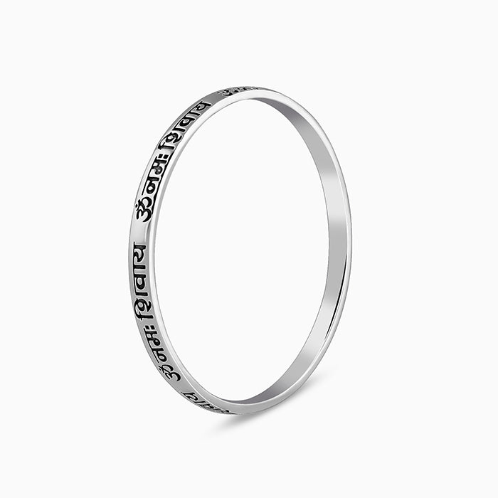 An oxidised silver kada for men engraved with Om Namah Shivay, crafted for the man who carries strength, devotion, an...