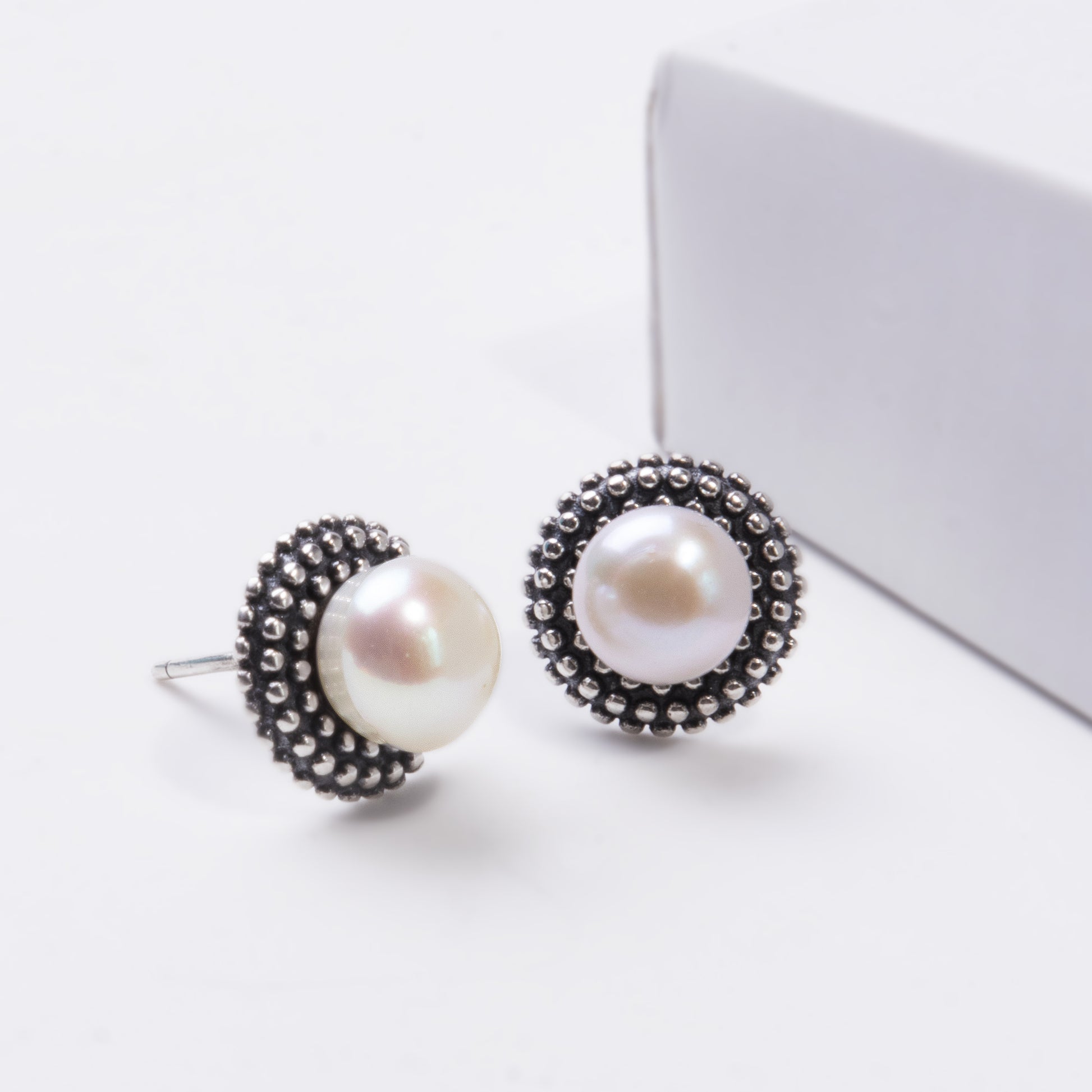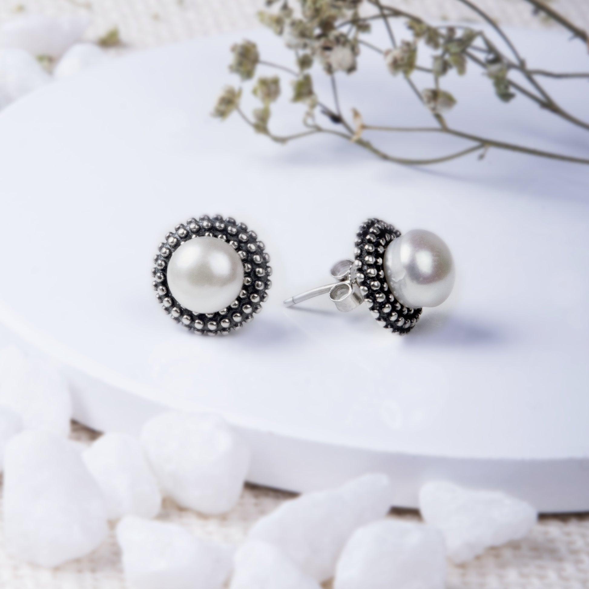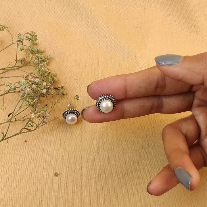A fresh pearl, right out of the oyster, is the purest of them all. We wanted to bring our DIVAs nothing less than perfection. So we settled for the purest form – These Oxidised Silver Pearl Stud Earrings.