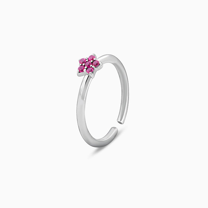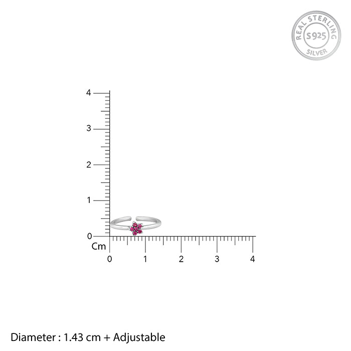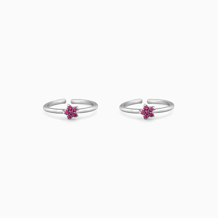 These oxidised silver toe rings for women feature a floral design with coloured zircons.