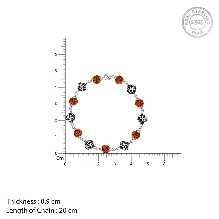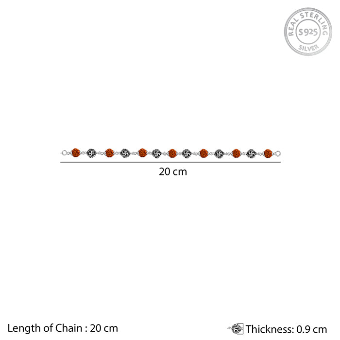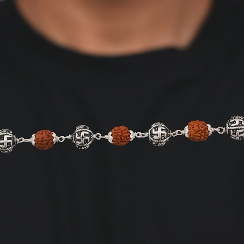 This oxidised silver bracelet for men blends tradition with bold style. Oxidized silver meets the sacred Swastik symbol and Rudraksh stone, reflecting strength, focus, and timeless confidence. A modern talisman for the man who carries his roots with pride.