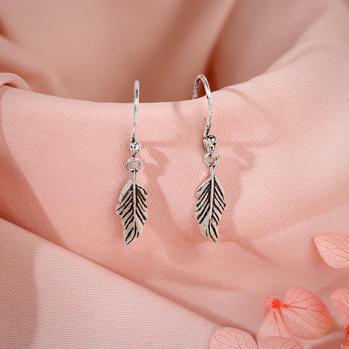 Oxidised Silver Vintage Leaf Earrings