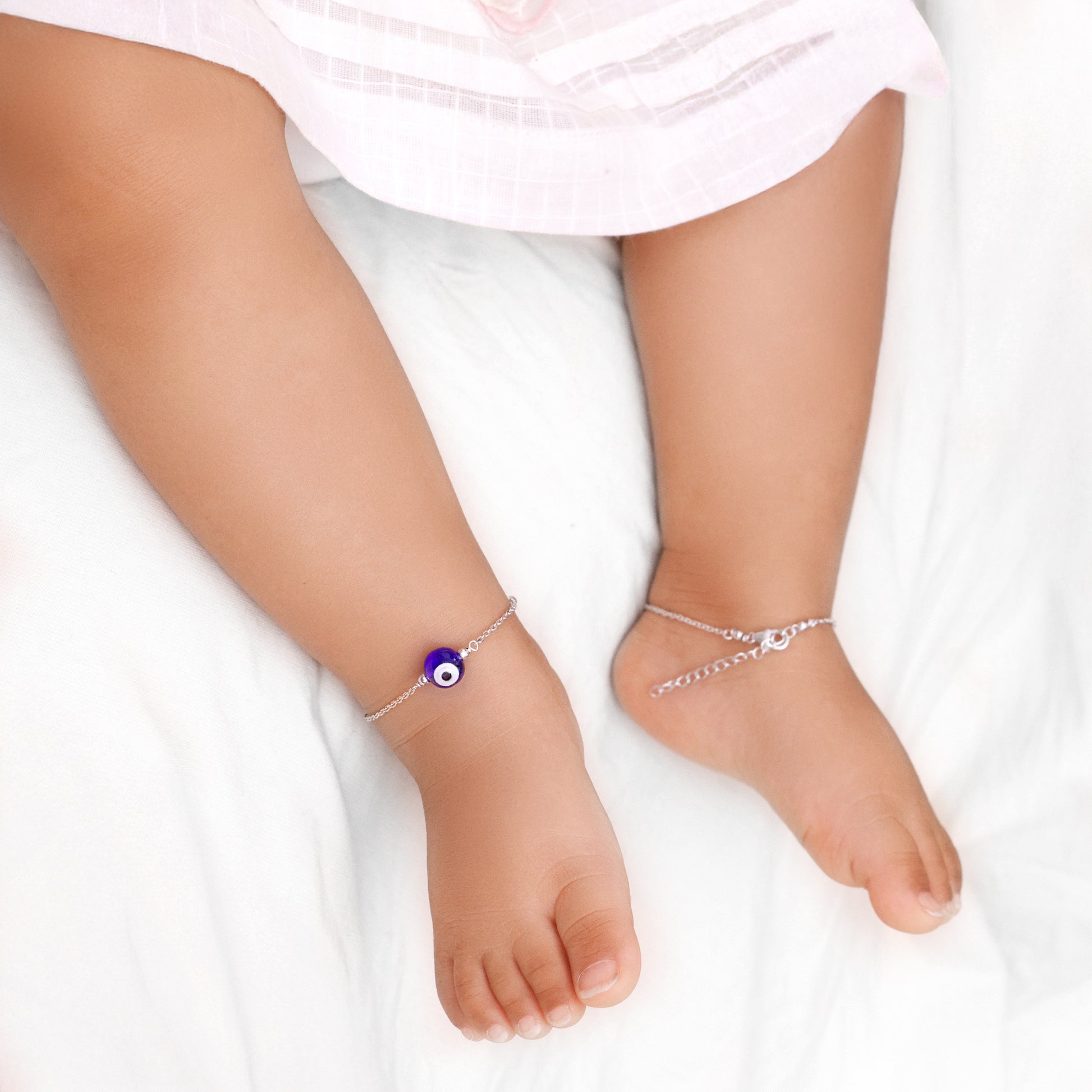 (Pair) Silver Evil Eye Cutie Kids Anklet