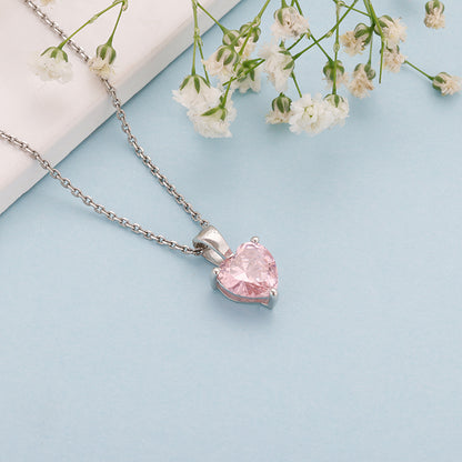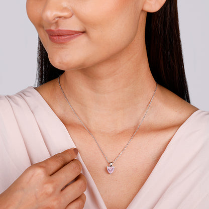 The Silver Pink Heart Pendant with Link Chain is inspired by the beauty of simple love stories that we come across.