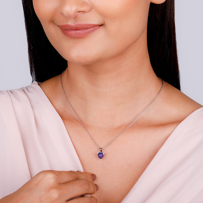 Silver Purple Heart Pendant with Link ChainMetal:Colour:SilverBuy NowCustomizeRegular price ₹2,499Sale price ₹2,499 Regular priceUnit price / per₹5,499Silver Purple Heart Pendant with Link Chain
