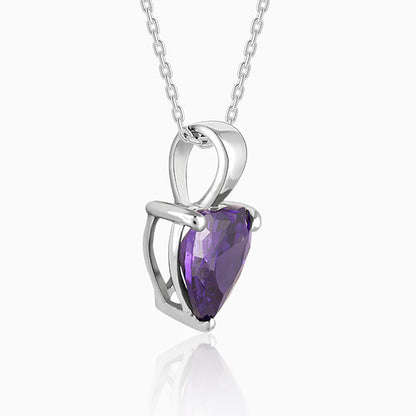This silver pendant has a heart-shaped design nestling a purple stone.