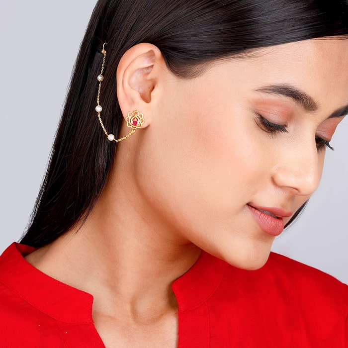 The Golden Lotus Pearl Earrings are inspired by the grand celebrations and huge gatherings when our loved ones come close to celebrate with each other.