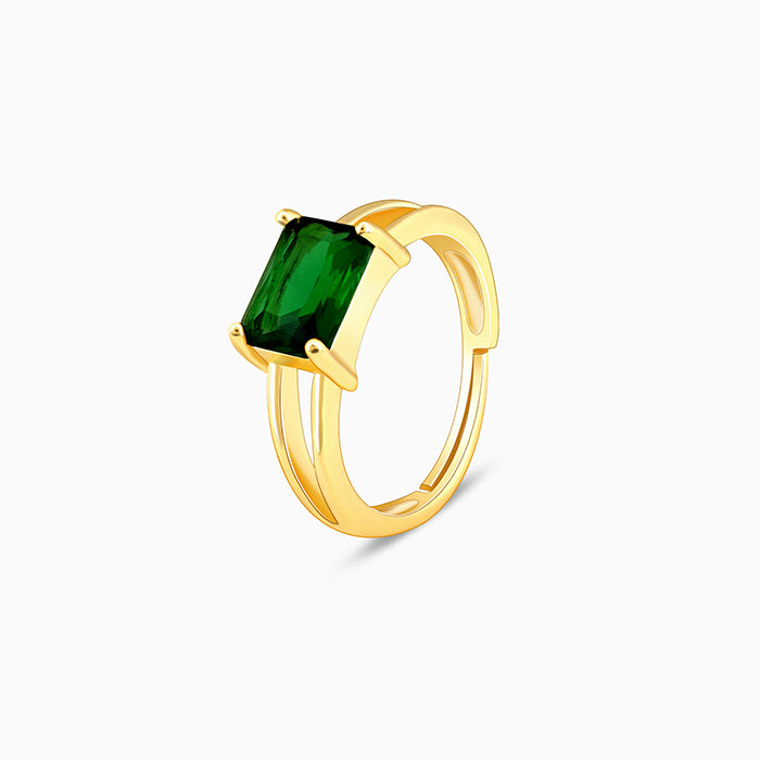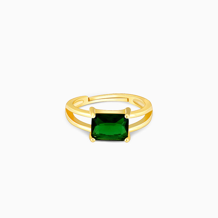 The Golden Green Velvet Stone Ring has a green rectangular stone with a golden rim.