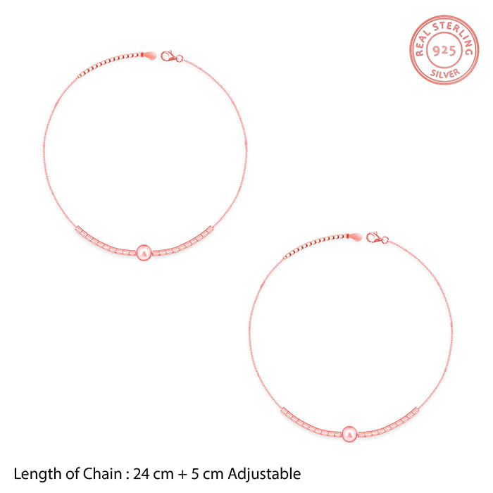 This rose gold anklet has a central bead with sets of rectangular beads on both its sides.