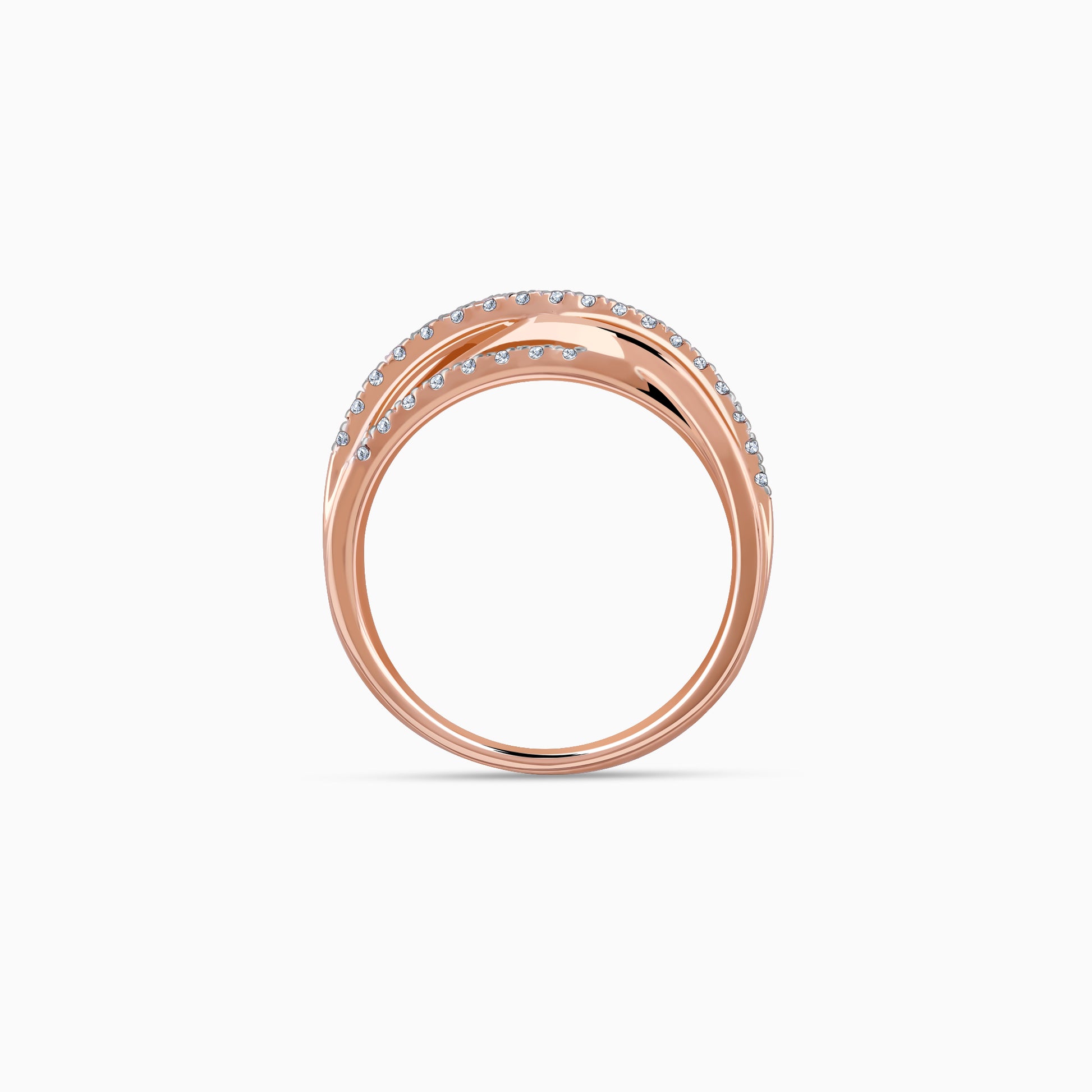 This pure rose gold ring features a dual-band design studded with lab-grown diamonds, with a wave in the centre.