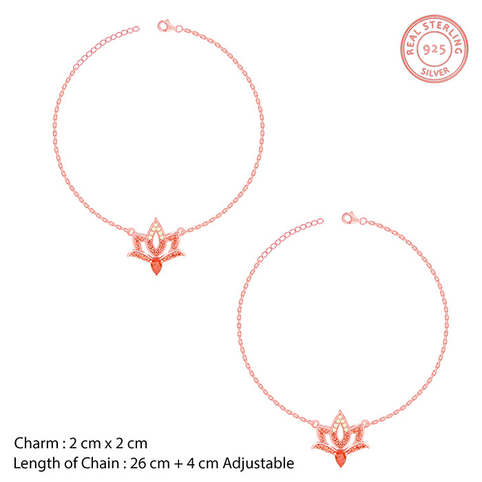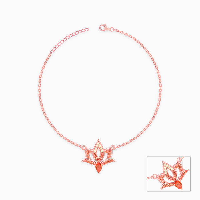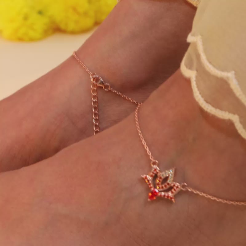 This rose gold plated anklet for women features a flower motif studded with coloured zircons. Designed in Italy. Inspired by India. Embrace the goddess within with the Shakti Collection by GIVA x Anna Giulia Chicco.