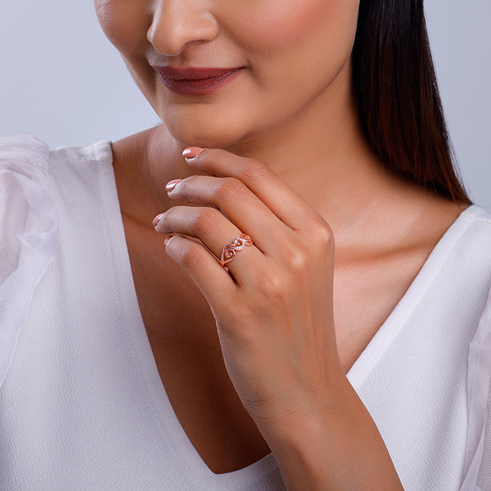 This rose gold women's ring features a peacock motif with zircons. Celebrate the timeless beauty of Indian textiles with GIVA's latest 'Magic of Tradition' collection. Wear and celebrate tradition, anytime.