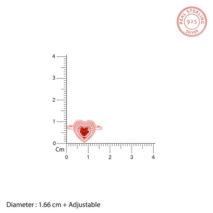 This rose gold ring has a heart motif with red coloured stone with a layer of zircon and engraved lines over it. This has an open heart mechanism which reveals the inscription of the letters "I" and "U". Celebrate your moments of passion with GIVA’s Red Romance Collection.