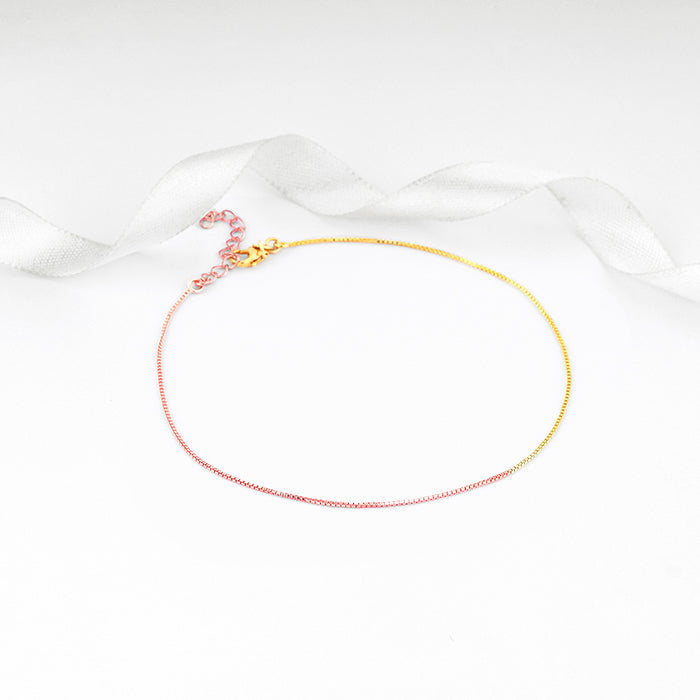 This dual tone anklet has a rose gold and golden plating featuring cable chain design.
