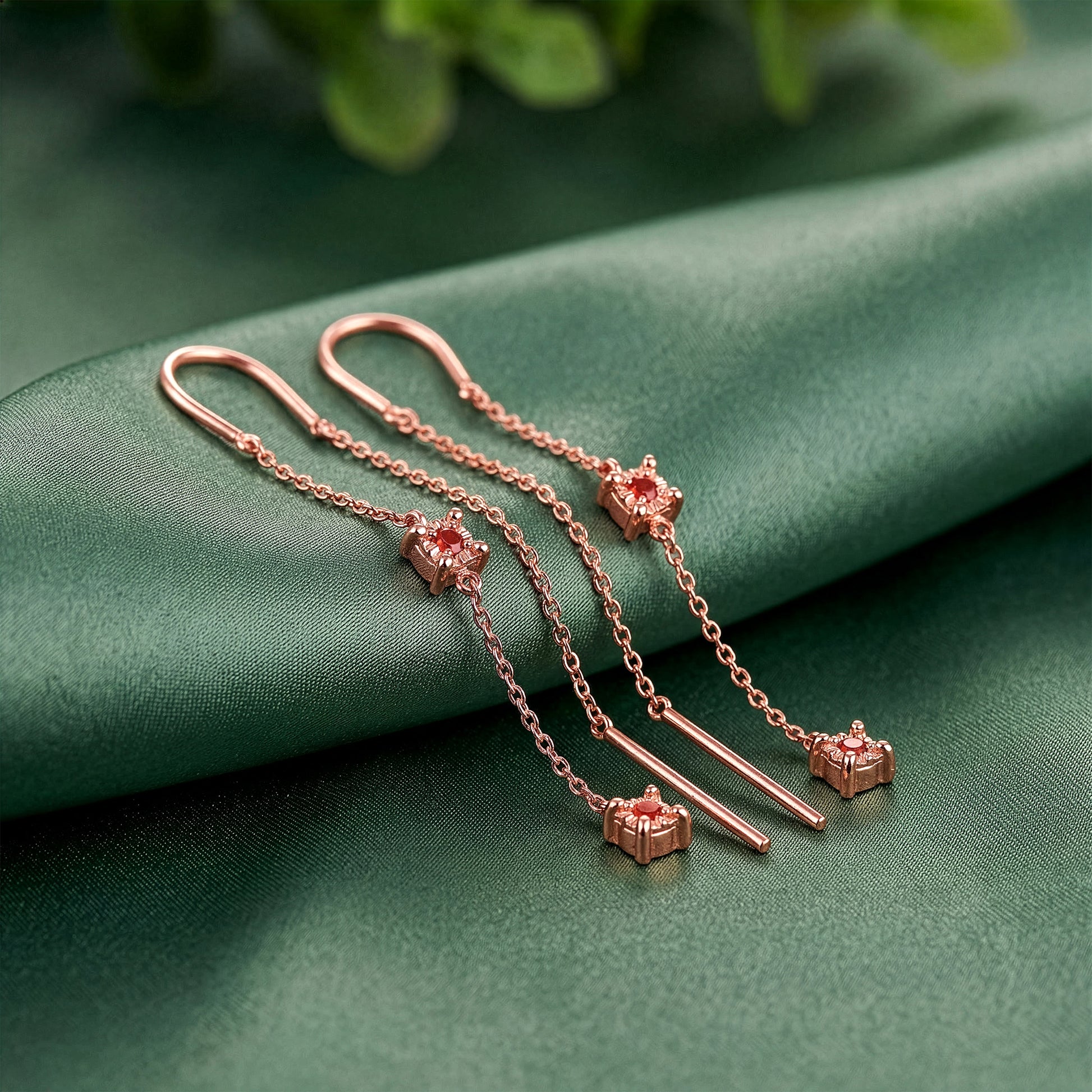 Light on the ears but heavy on impact, these rose gold plated sui dhaga earrings move with you and make every turn feel intentional. Accented with two square-set coloured zircons along the chain, they add just the right hint of sparkle to every sway. Designed in Italy. Inspired by India. Embrace the goddess within with the Shakti Collection by GIVA x Anna Giulia Chicco.