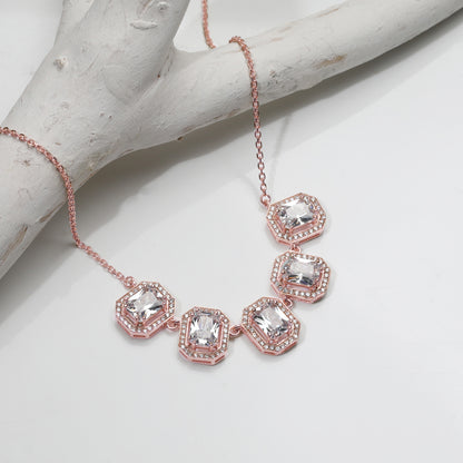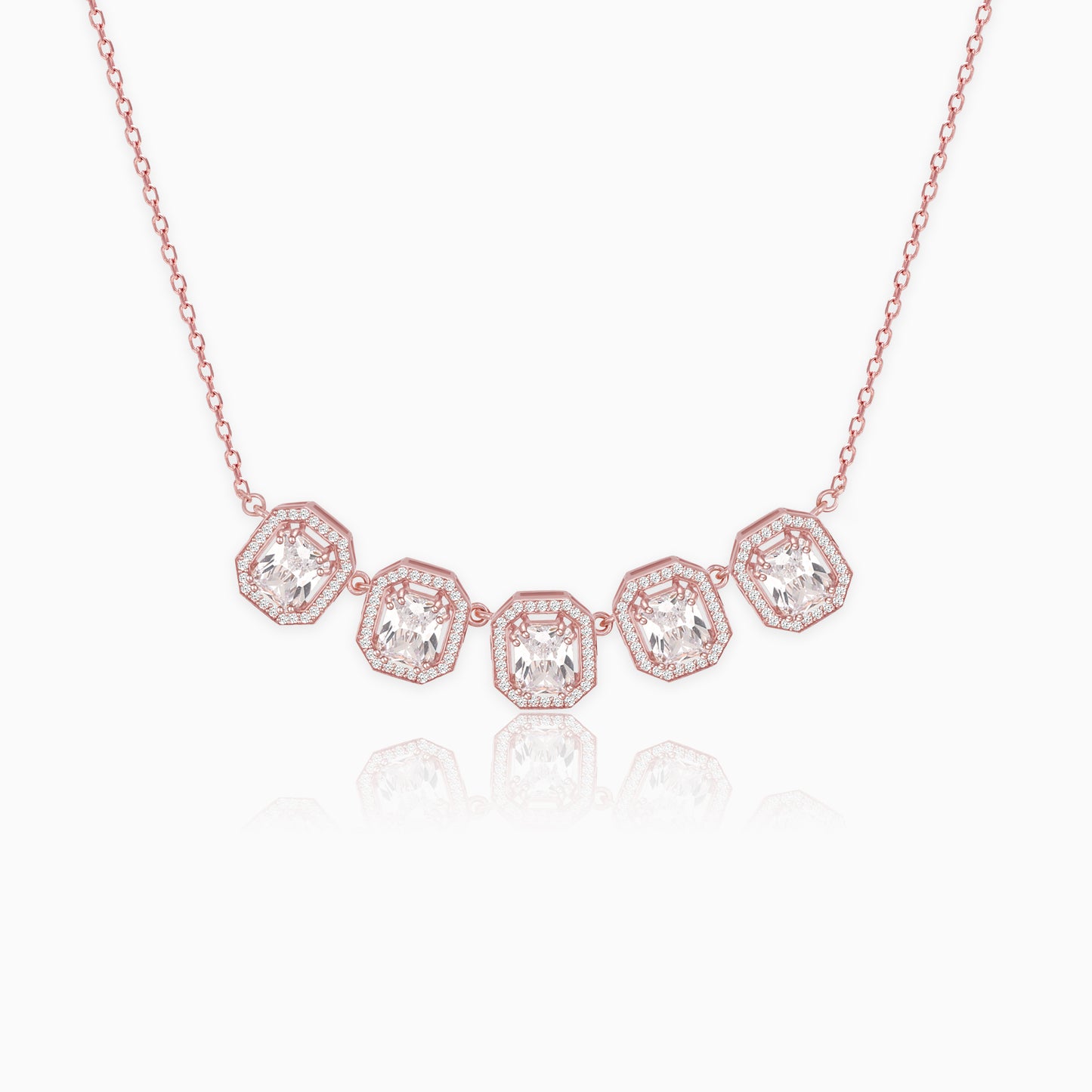 The Rose Gold Baguette Bunch Necklace brings to life one of our oldest obsessions with baguette shapes and the shiniest zircons.