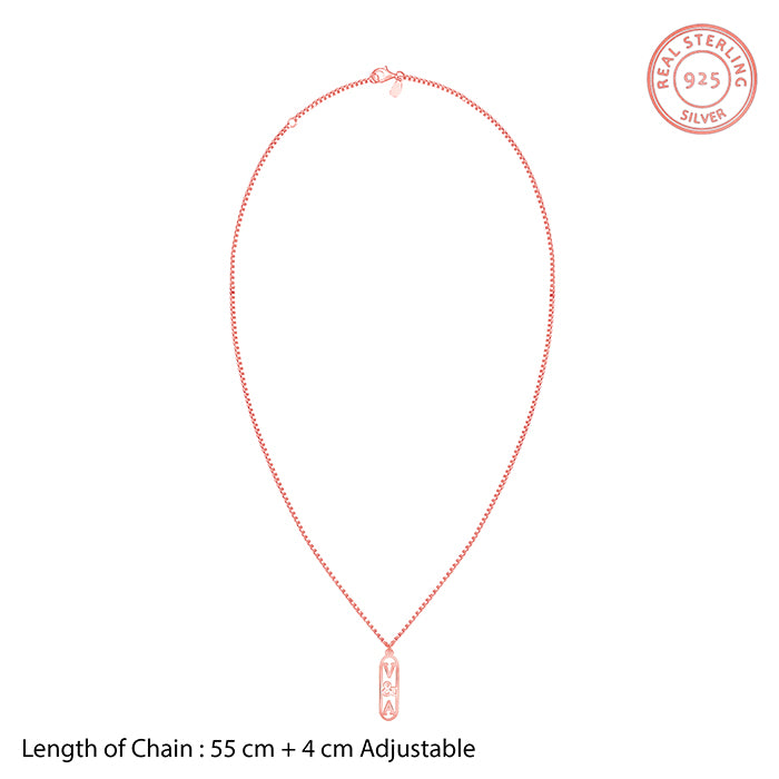 This pendant keeps it classy with a personal twist. This rose gold plated personalised pendant for women features the initial of your choice, set against a sleek vertical bar design.