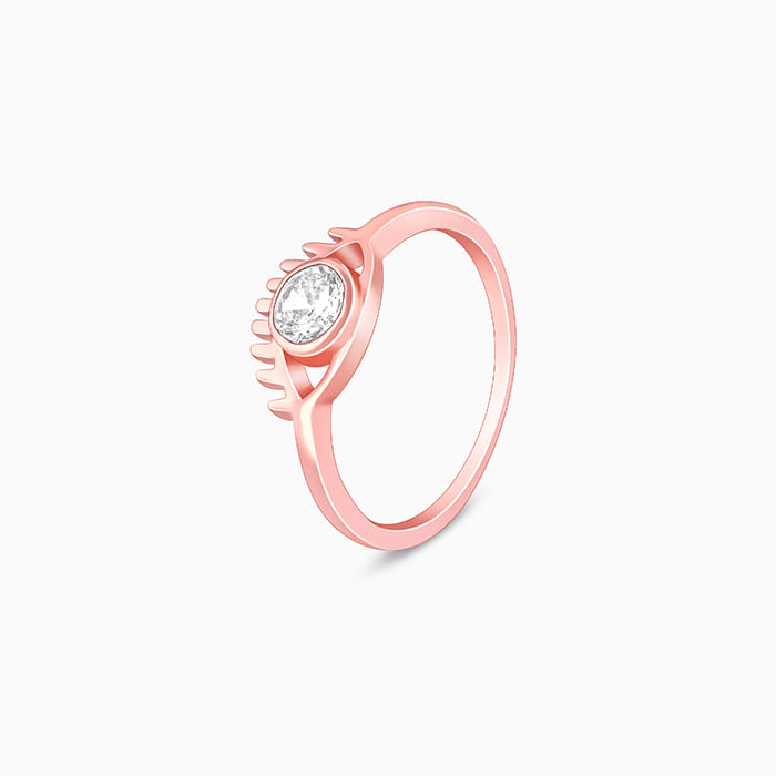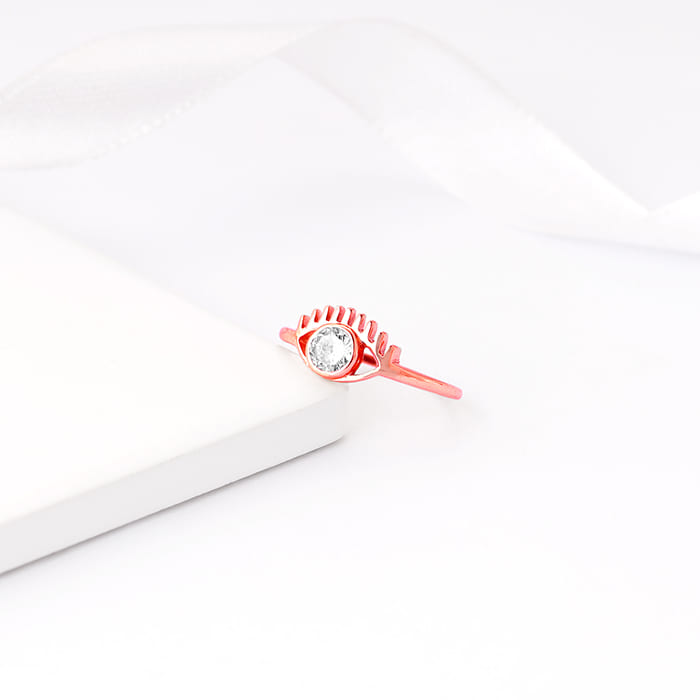 This rose gold ring has an eye motif studded with zircon in the centre with detailing.