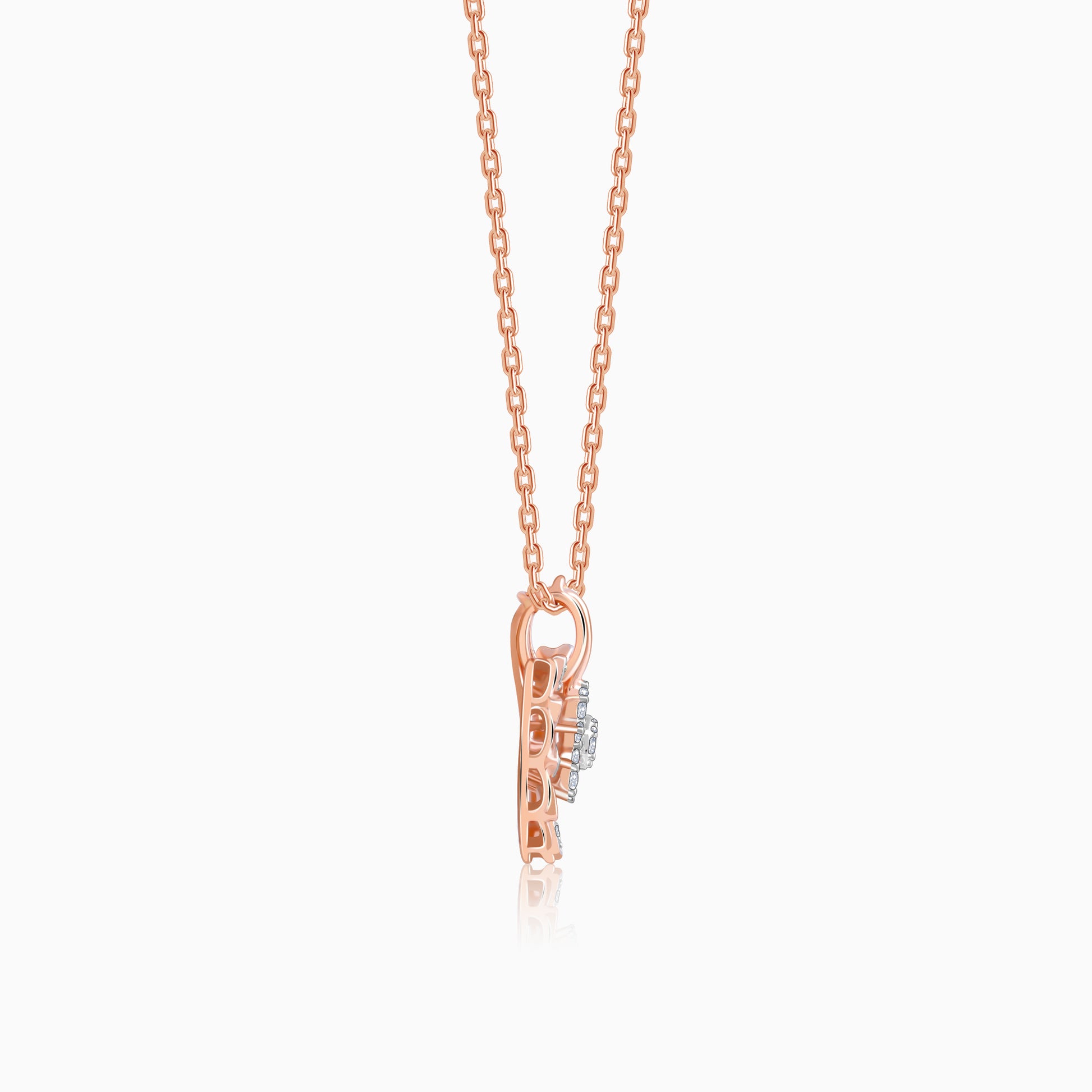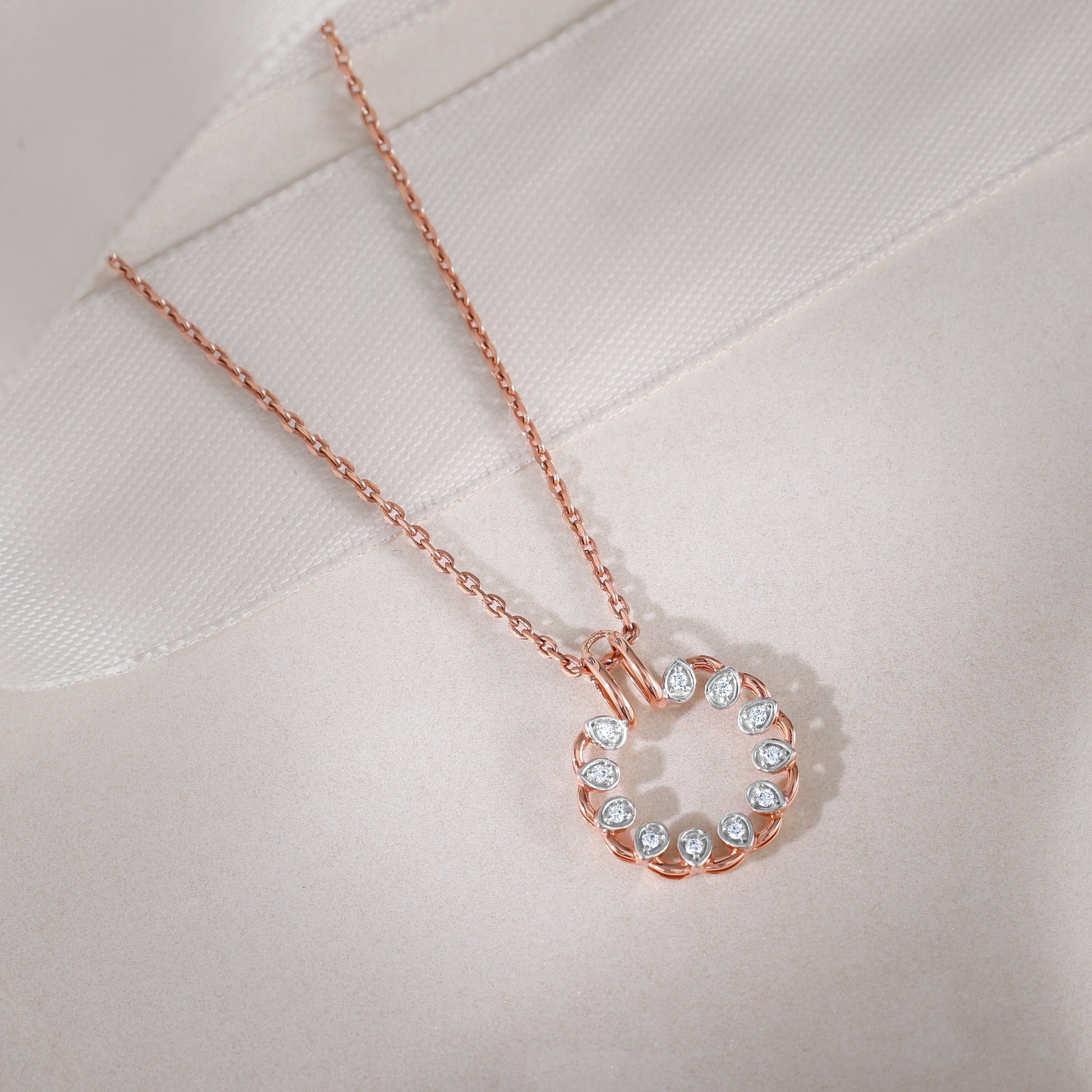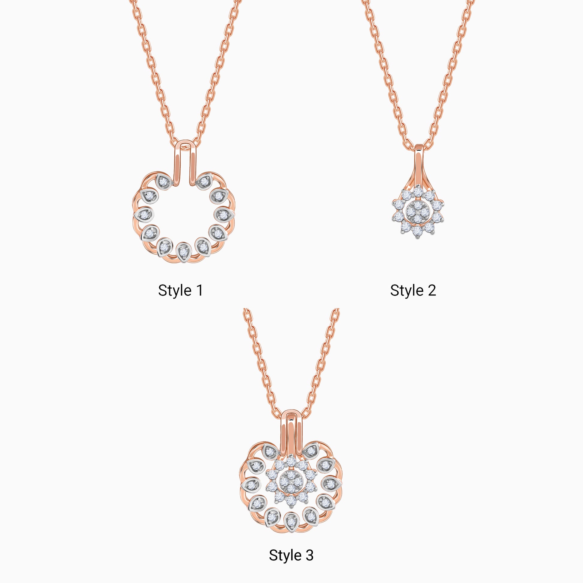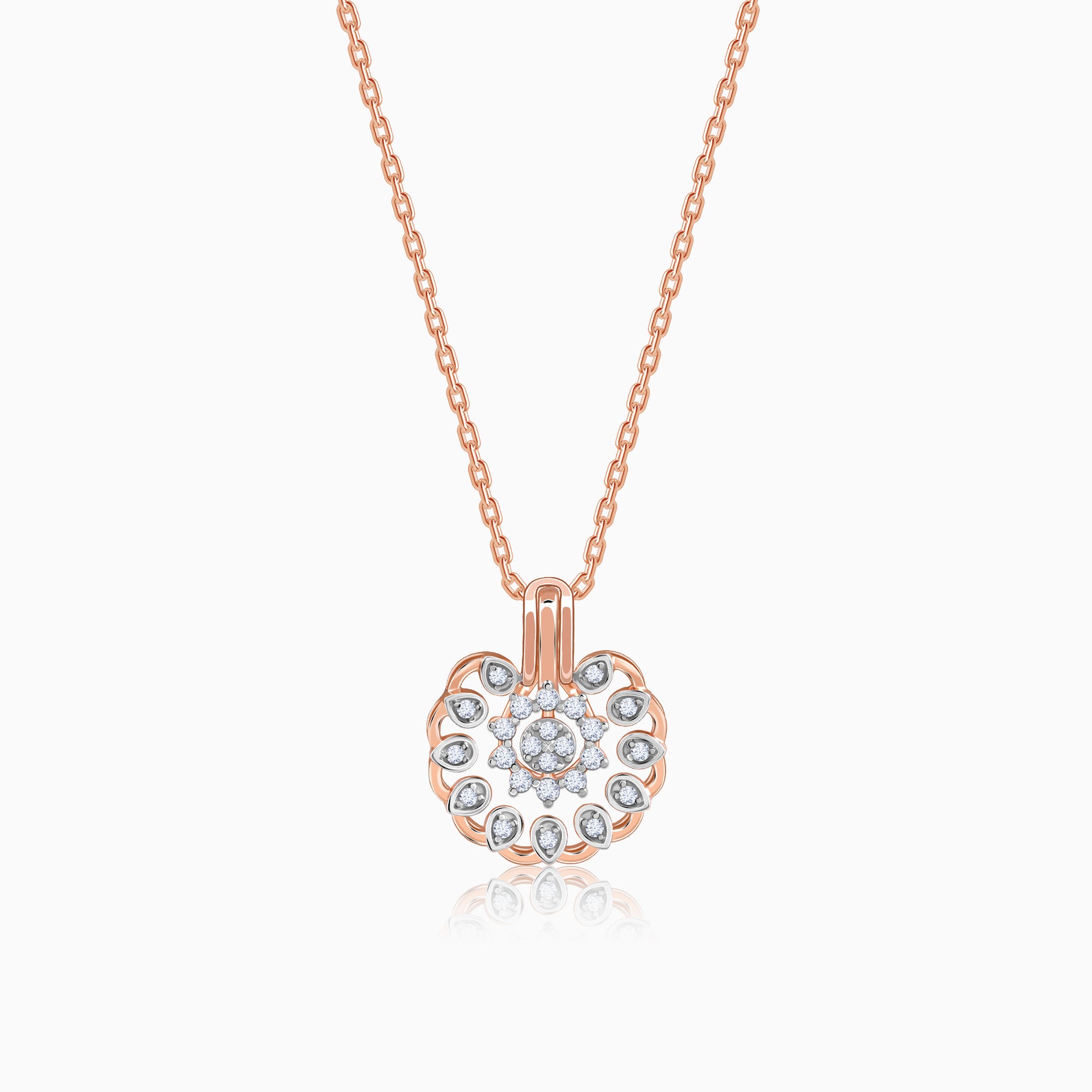 This pure rose gold pendant for women features a convertible floral design with intricate detailing, studded with lab grown diamonds.