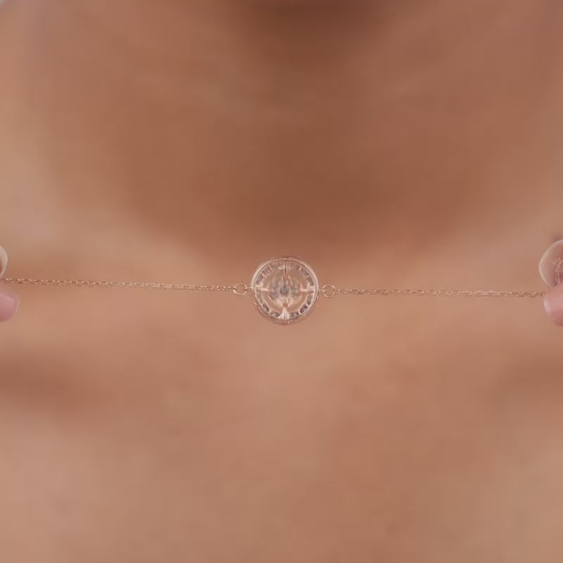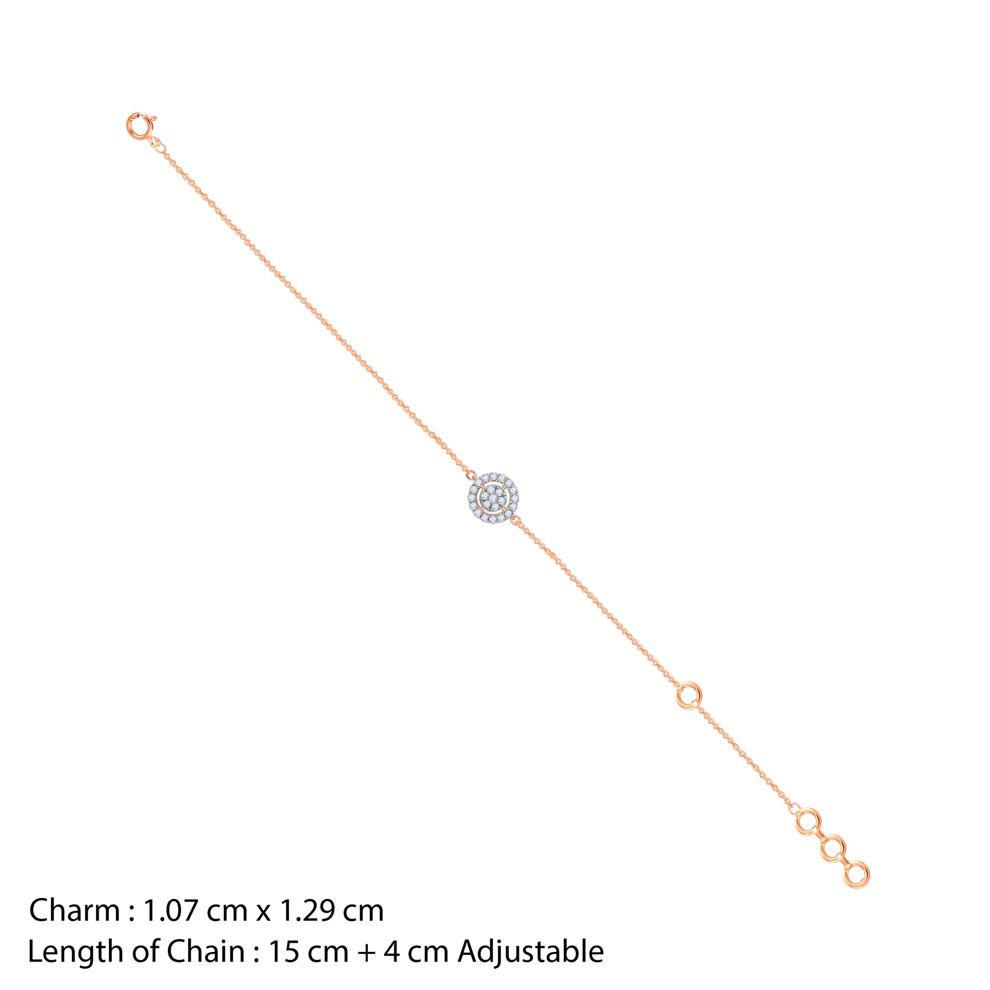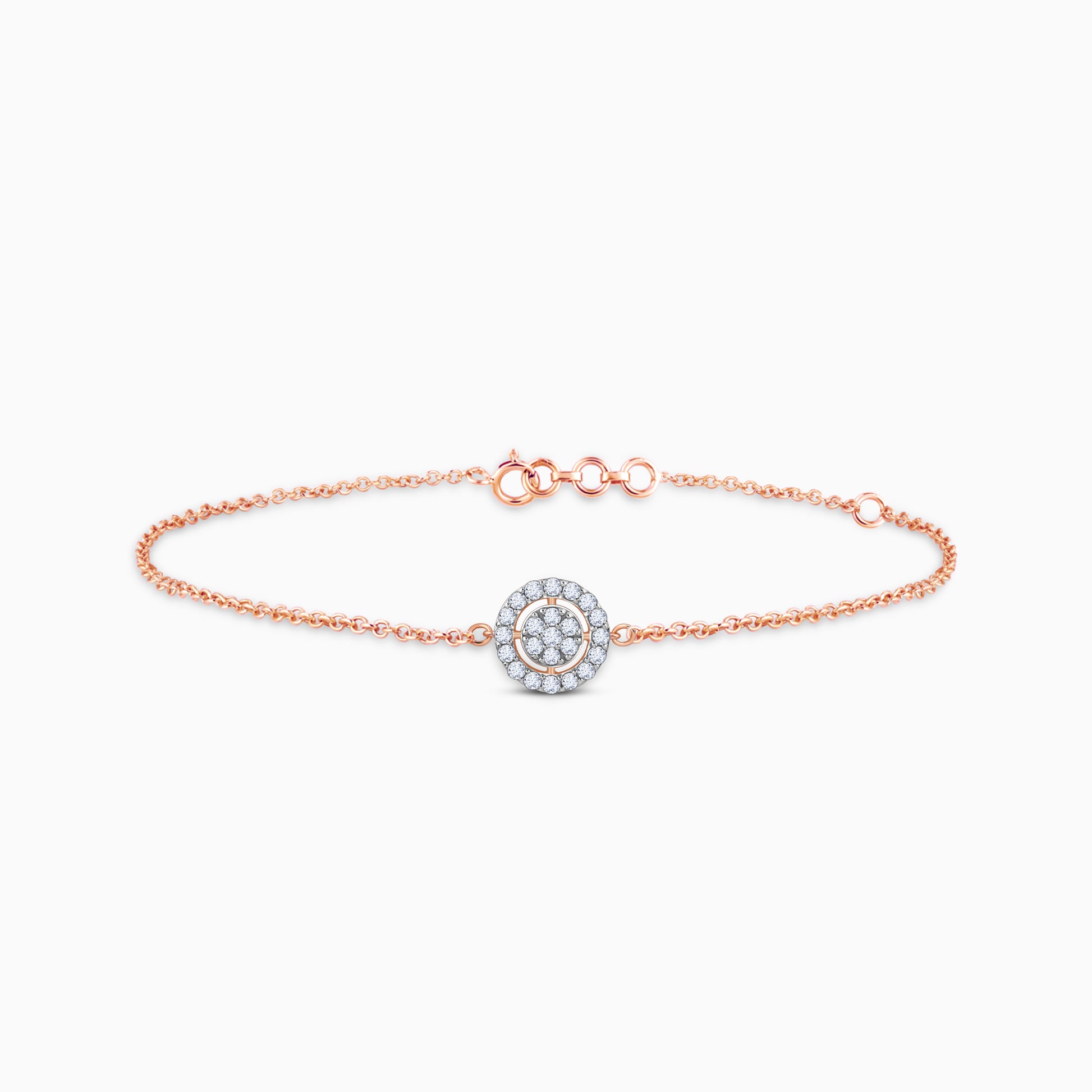 This rose gold bracelet features a dual circular motif studded with lab grown diamonds.