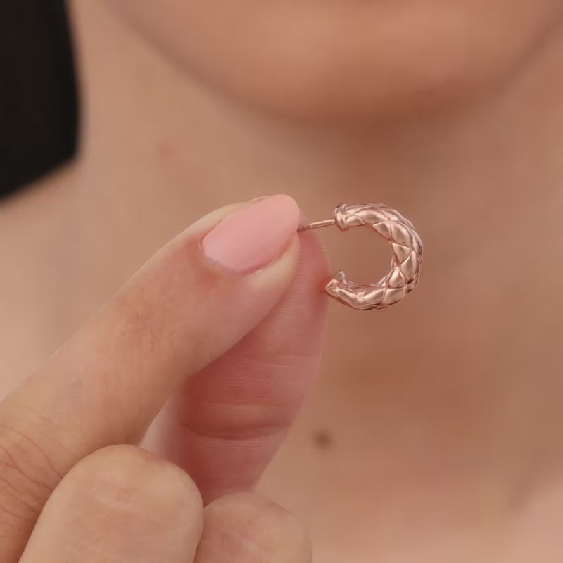 These womens rose gold plated earrings feature a stylish criss-cross design throughout.