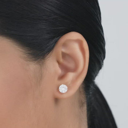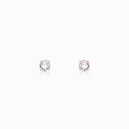 The rose gold earrings have a round zircon stone on a rose gold stud.