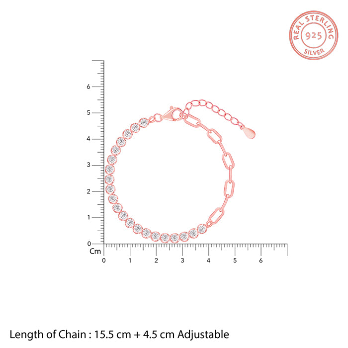 For the woman whose elegance is effortless, this silver rose gold-plated tennis bracelet studded with sparkling zirco...
