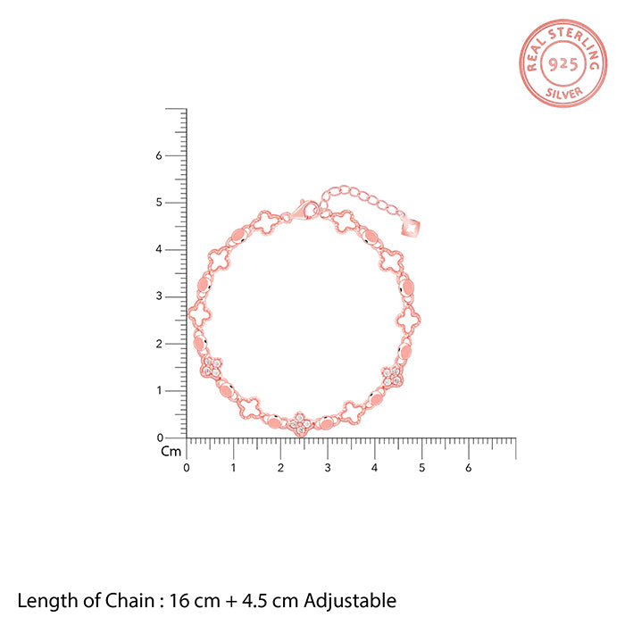 This rose gold plated bracelet for women features an alternating clover design set with zircons.
