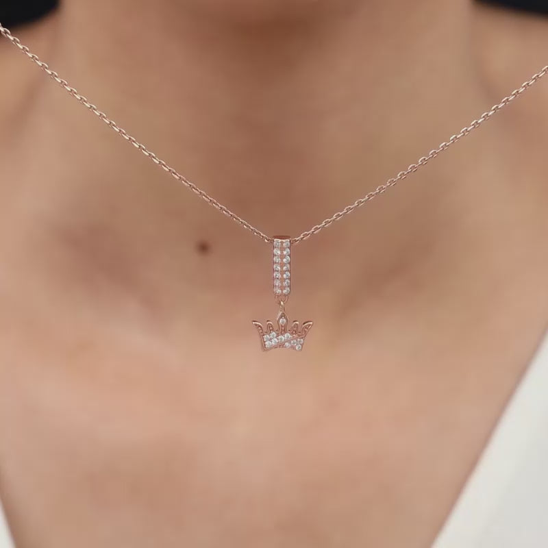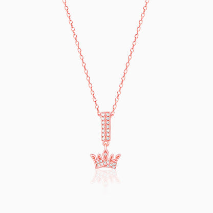 This rose gold pendant features a cute crown charm dangling from a dainty stick of sparkling CZ's.