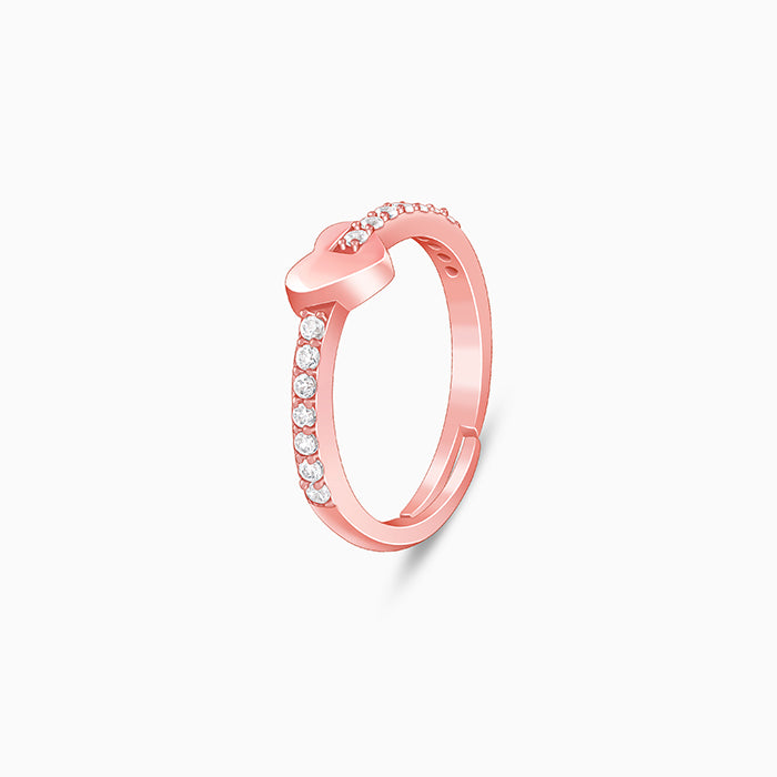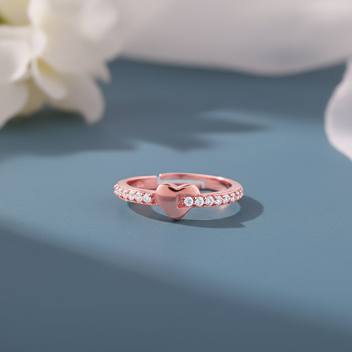Every heart tells a story, and this rose gold ring lets yours shine. Its charming heart centerpiece, embraced by a ba...