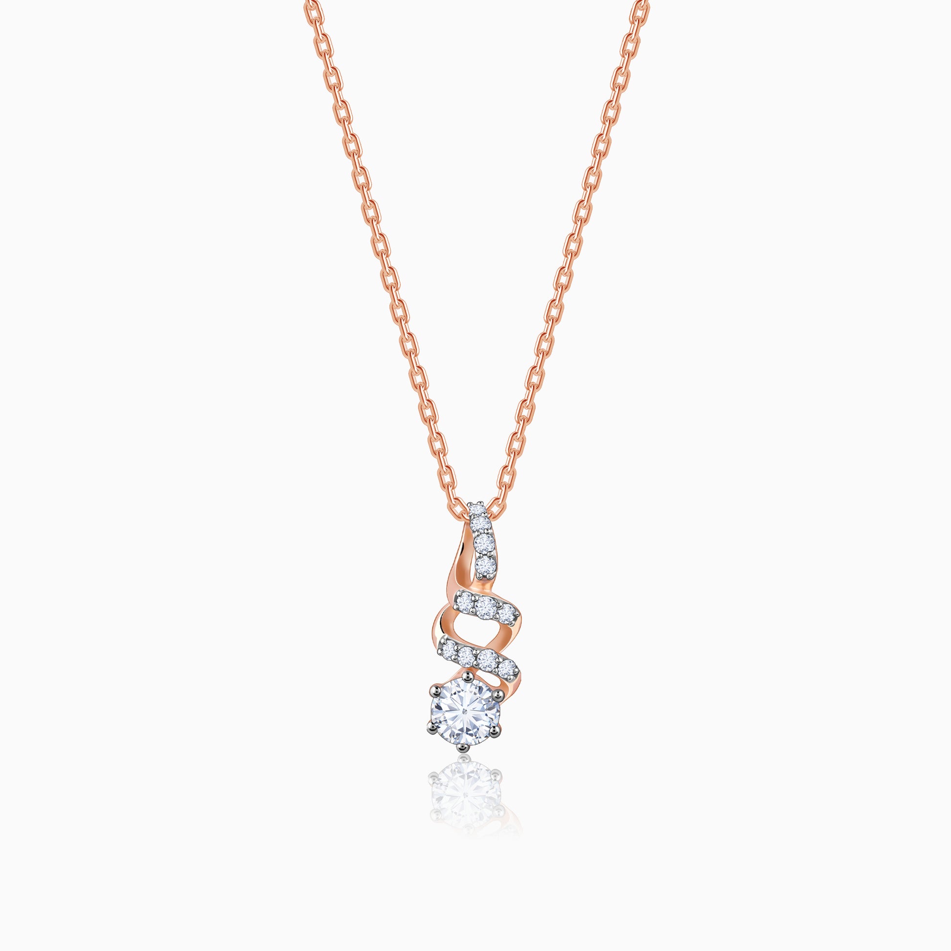 This pure rose gold pendant features a spiral motif with lab-grown diamonds.