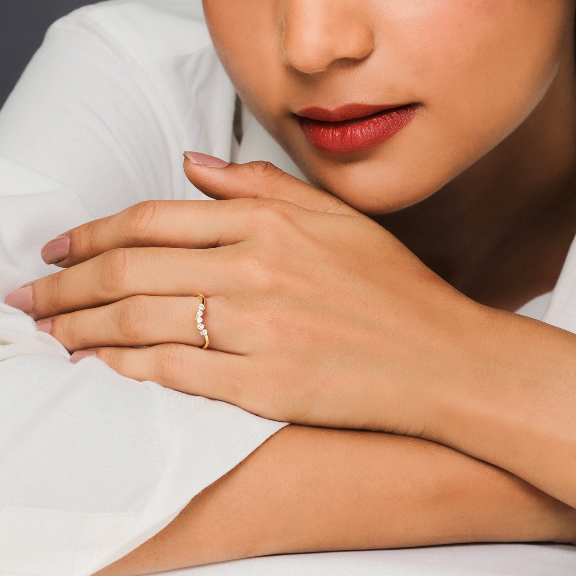 The Golden Eternity Ring is here to give a curvy spin to the classy good old gemstone design. The best upgrade is right here DIVAs.