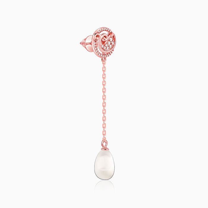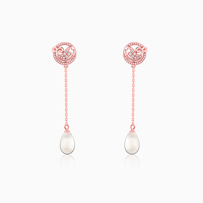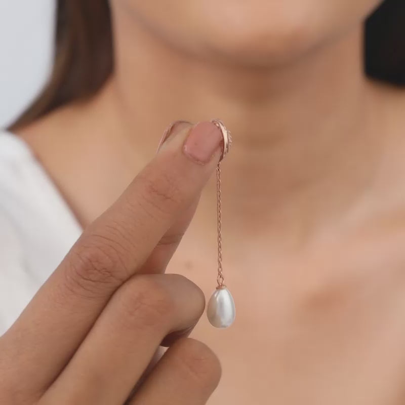 These rose gold drop earrings feature a zircon-studded fish motif and a chain ending in pearls. Celebrate the timeless beauty of Indian textiles with GIVA's latest 'Magic of Tradition' collection. Wear and celebrate tradition, anytime.