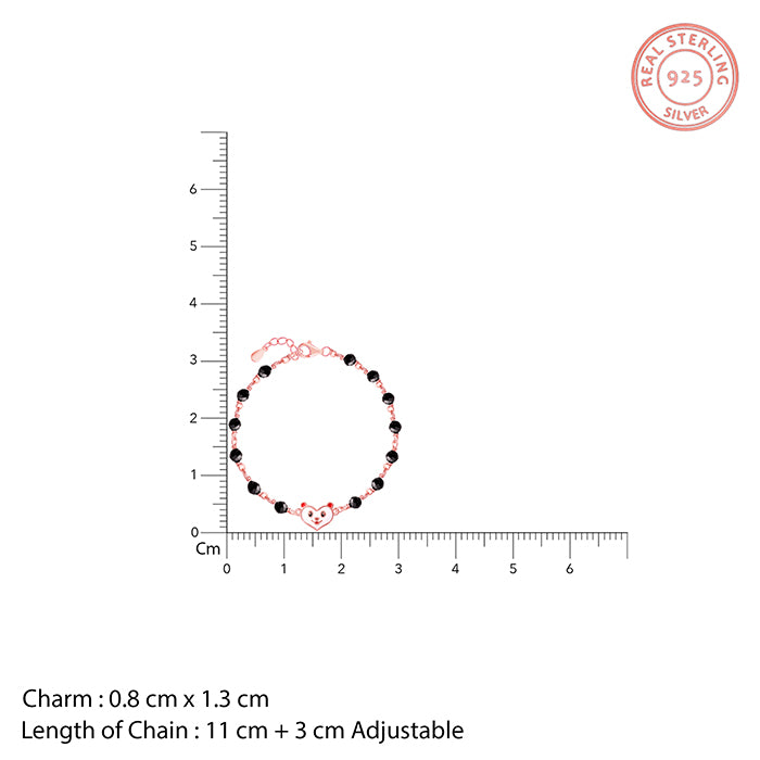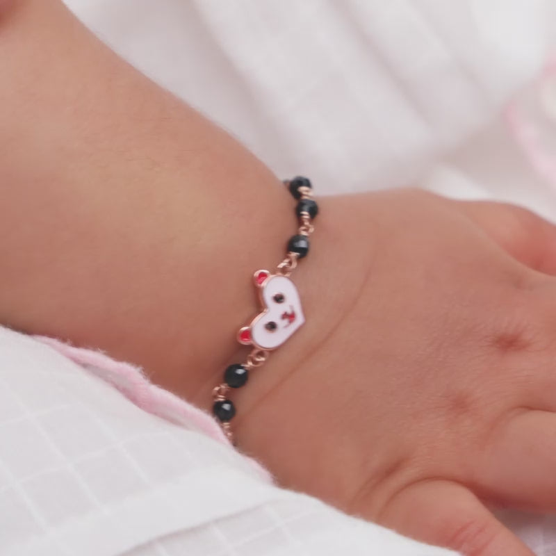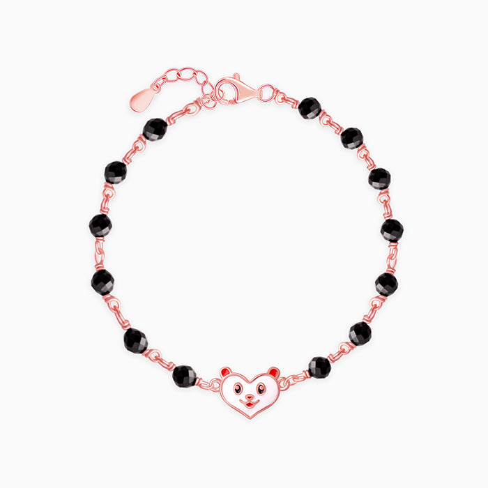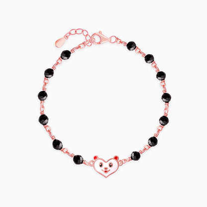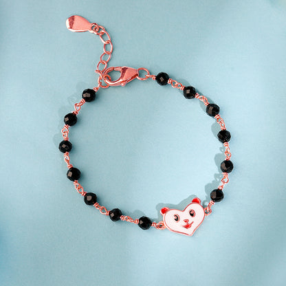 This rose gold kids bracelet features a GIVA mascot at the centre. The enamel-coated mascot pairs beautifully with black beads on the chain.