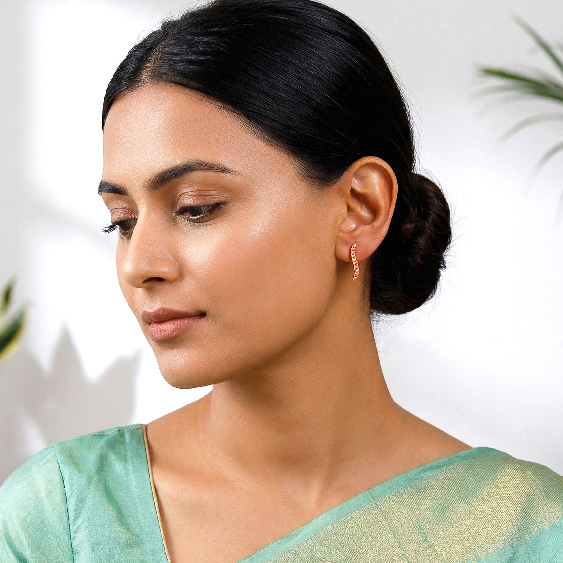 Inspired by the fearless energy of a modern muse, these rose gold plated earrings bring power and poise together in one fluid silhouette set with coloured zircons. Designed in Italy. Inspired by India. Embrace the goddess within with the Shakti Collection by GIVA x Anna Giulia Chicco.