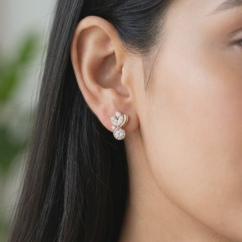 She is drawn to jewellery that mirrors the beautiful, winding journey of love. This rose gold plated silver bracelet features a graceful "S" design that winds through a brilliant cluster of multi-shaped zircons, capturing the light like a perfect evening under the stars. Barkha Singh x GIVA brings to you the Glow in Motion collection that celebrates CNC craftsmanship for the first time in silver.