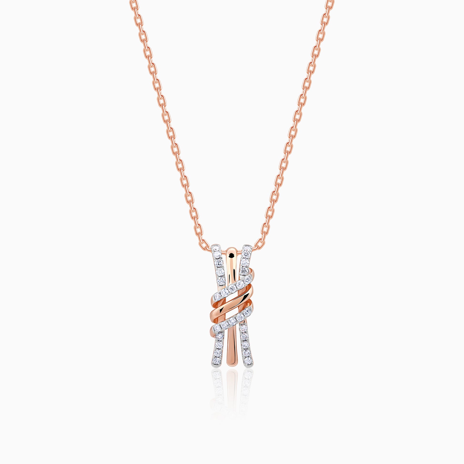 This pure rose gold pendant for women features an intricate design partially studded with lab-grown diamonds.
