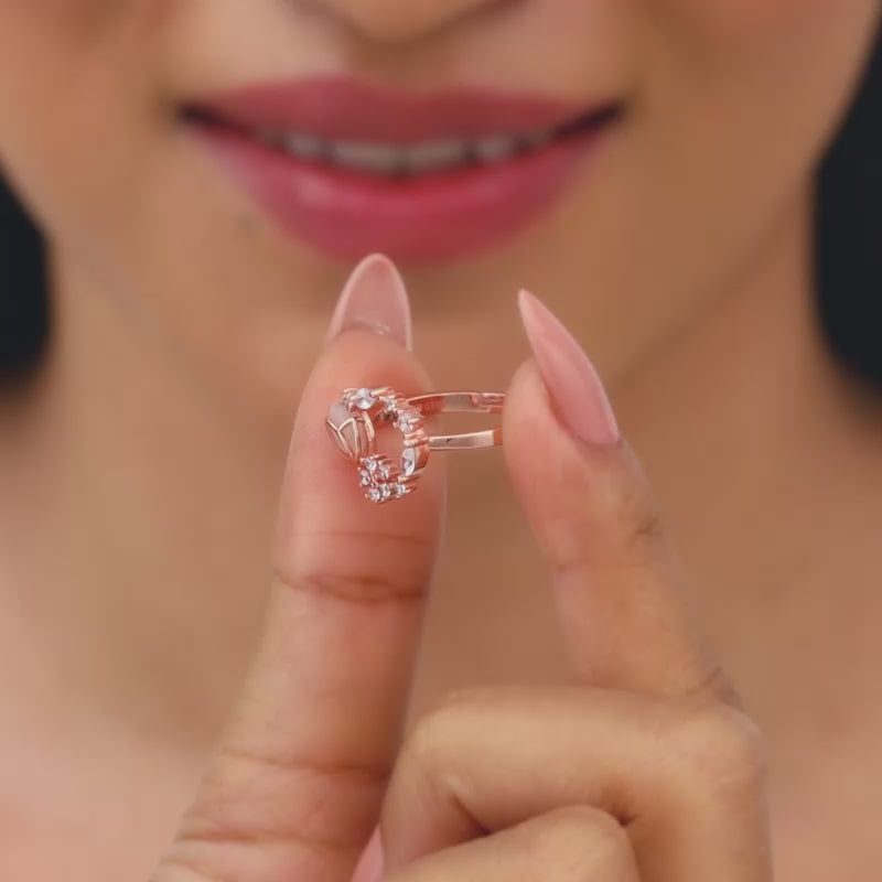 The rose gold ring is handcrafted with love, just for YOU. Its intricate design possesses all the thoughtfulness you need around you. With the perfect balance of leaves, flowers, and drop design, this ring is nothing less than a true masterpiece.