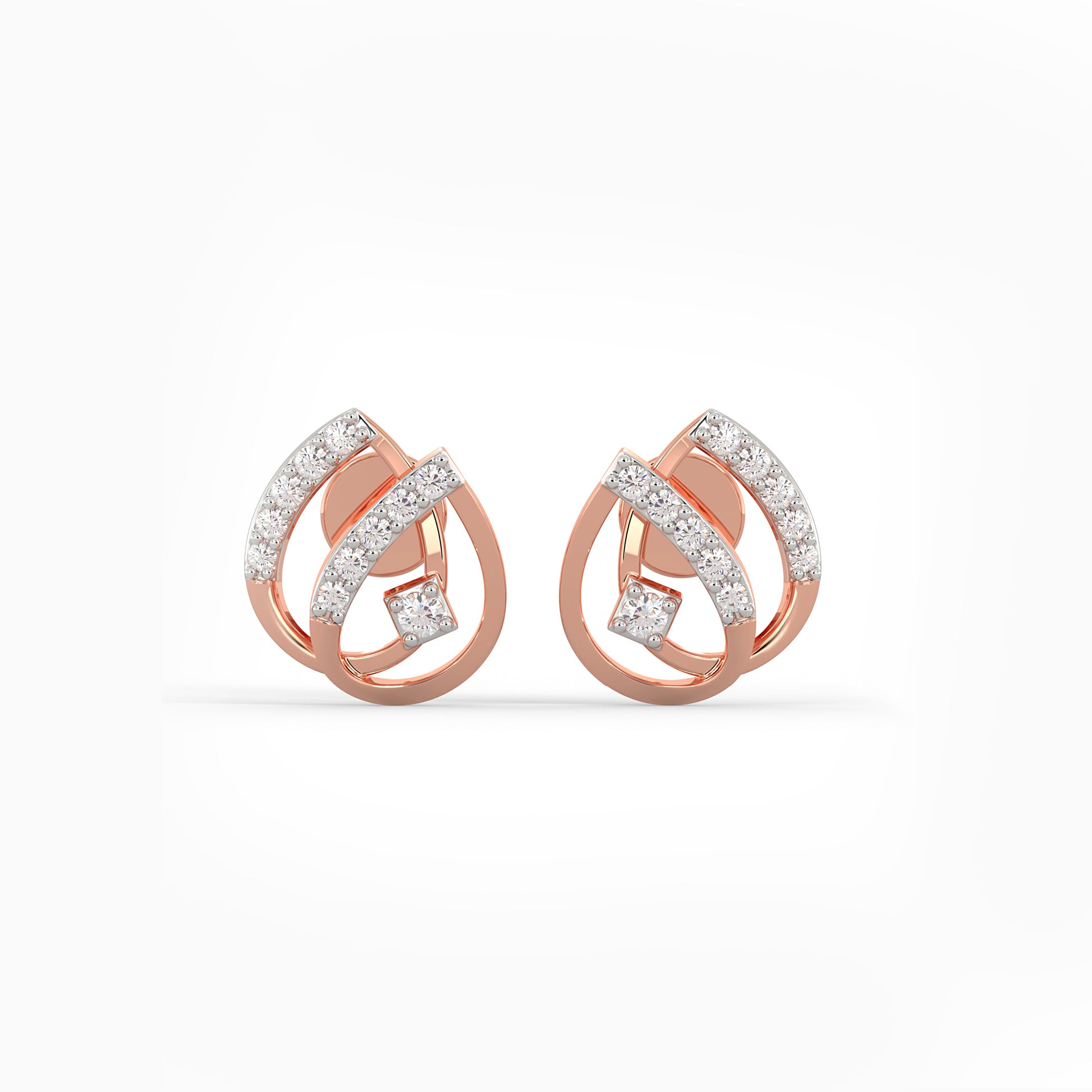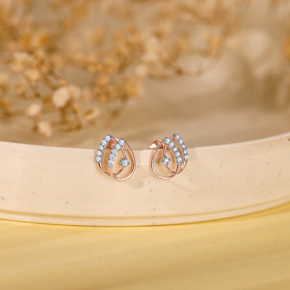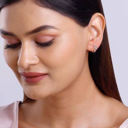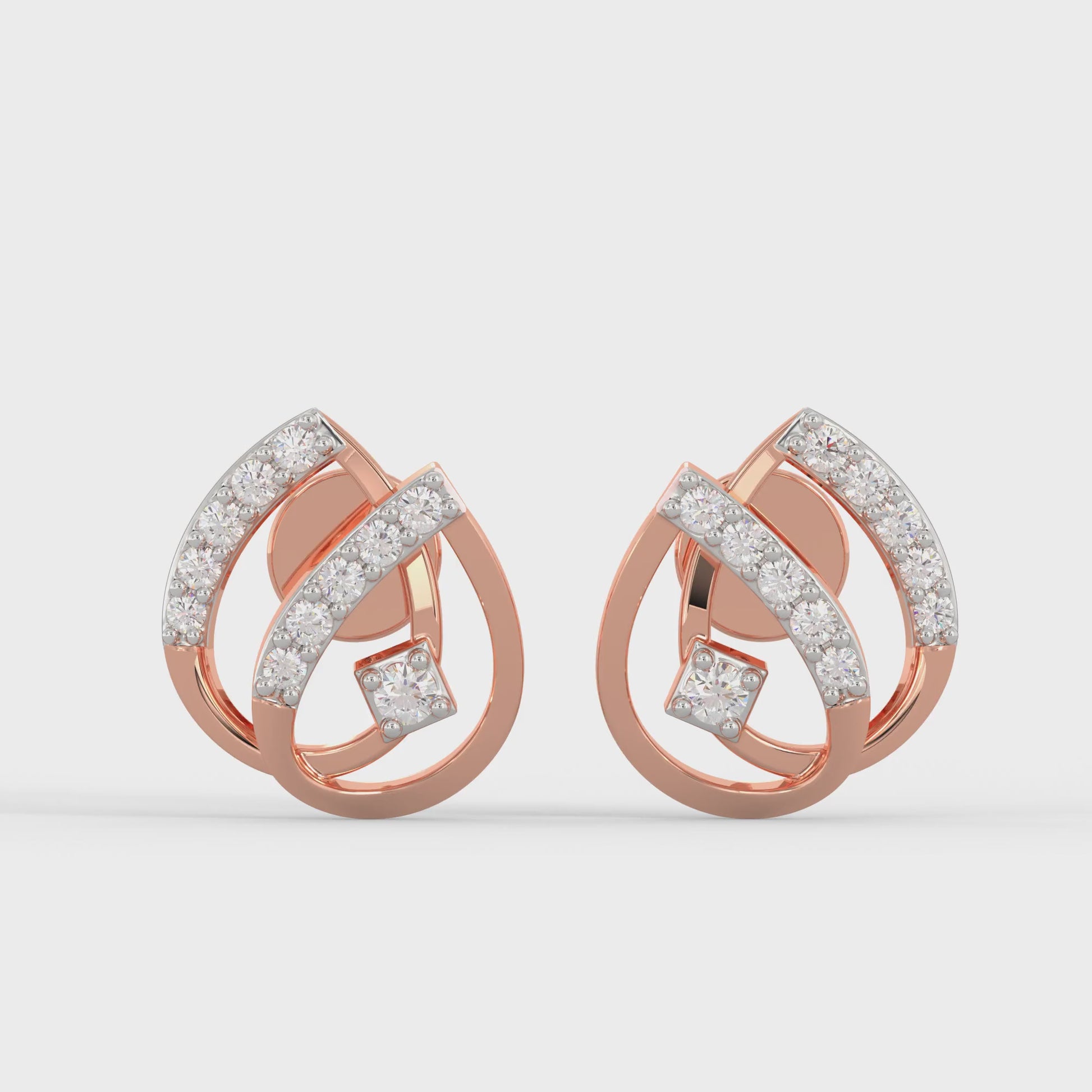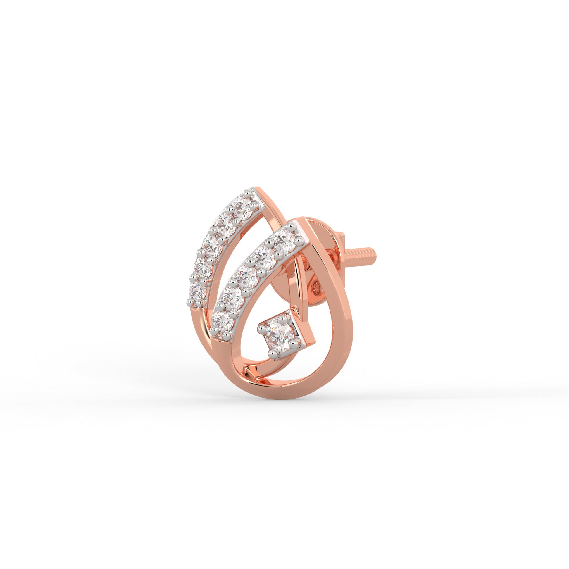 These pure rose gold earrings feature a dual leaf motif studded with lab-grown diamonds.