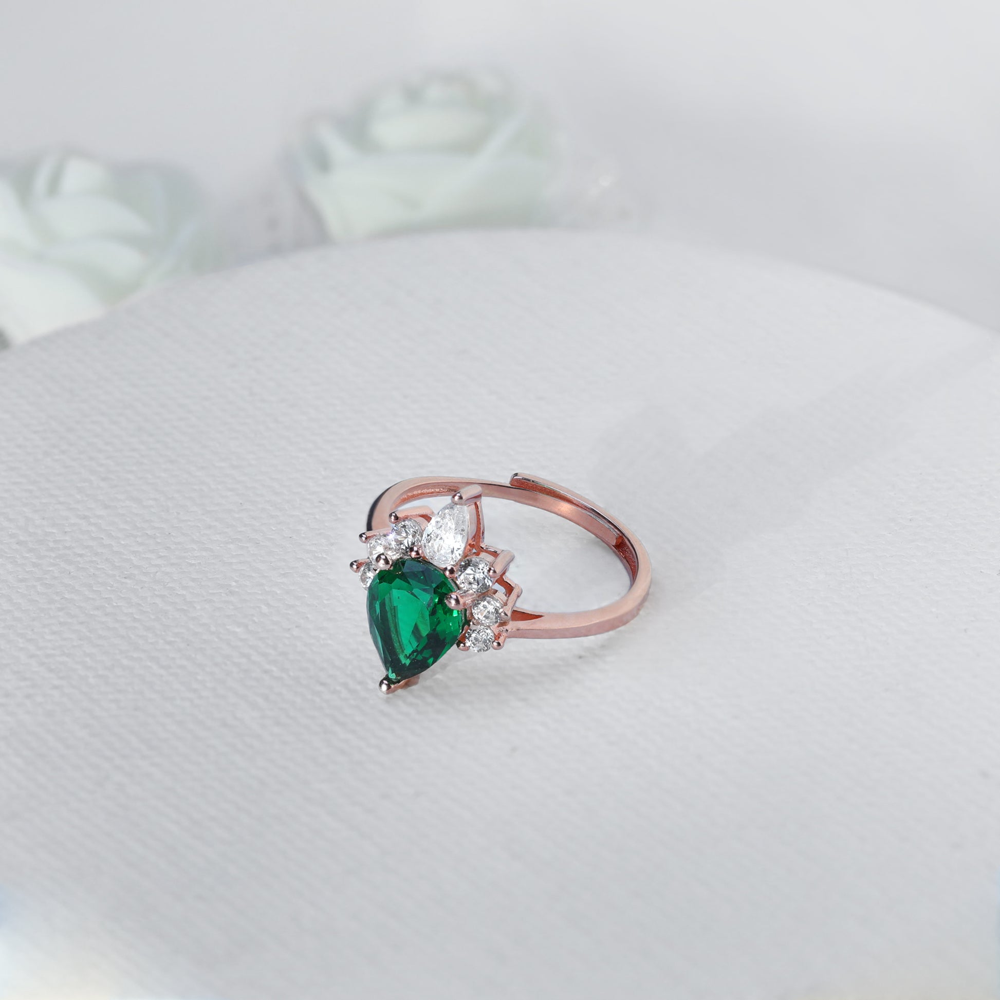 Rose Gold Emerald Green Drop Ring