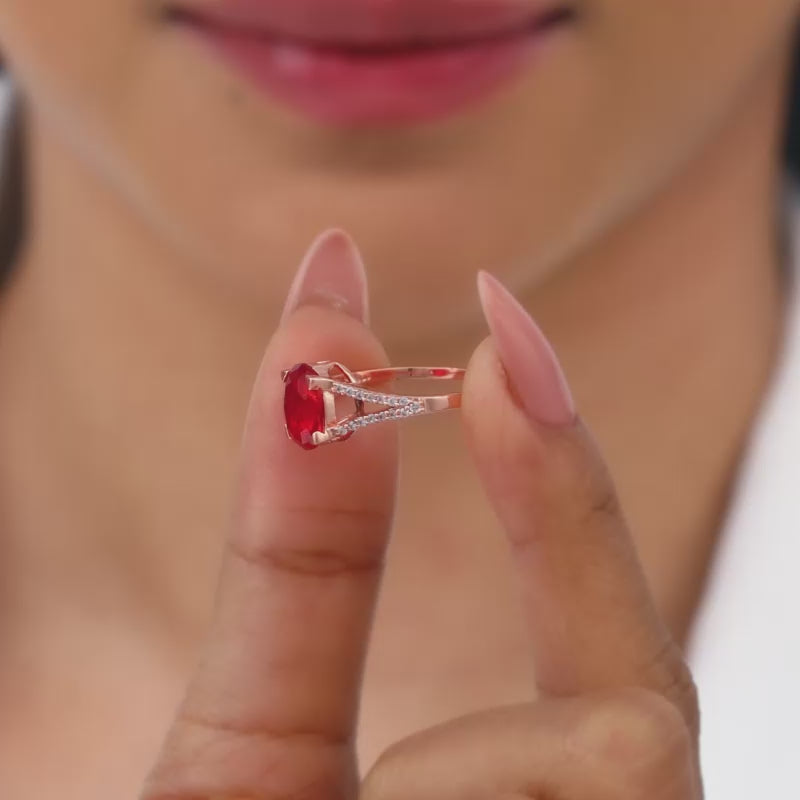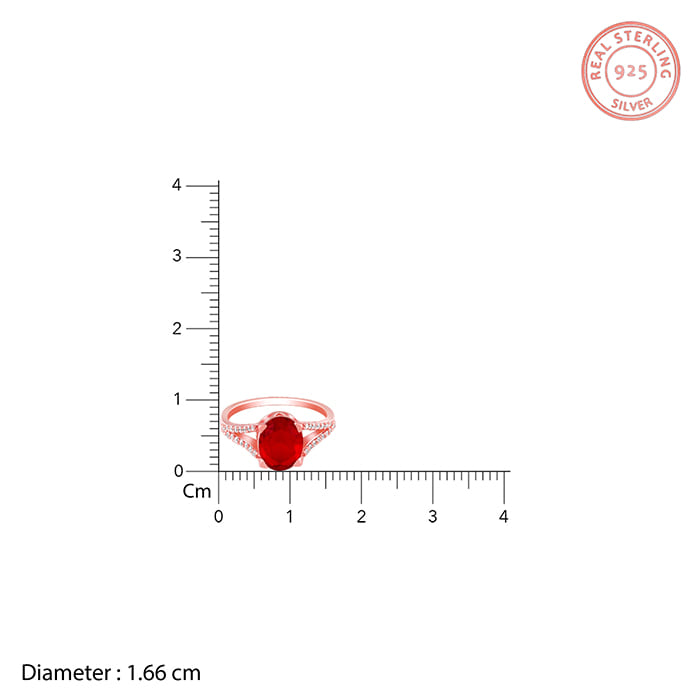 This rose gold ring features an oval motif with red stones shouldered with V-type design studded with zircons. Celebrate your moments of passion with GIVA’s Red Romance Collection.