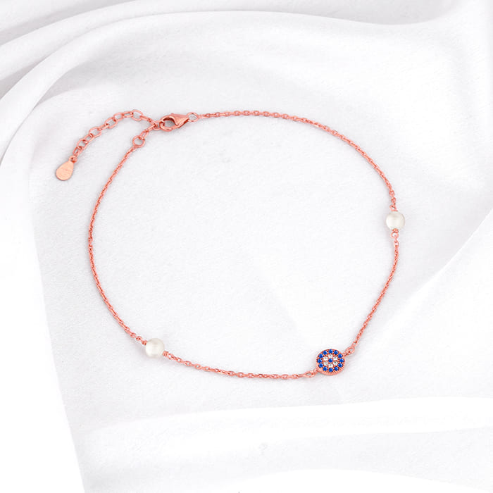 Rose Gold Evil Eye Pearl AnkletMetal:Colour:Rose GoldBuy NowCustomize -