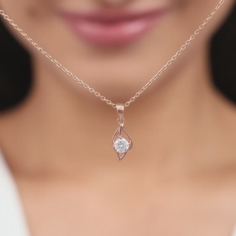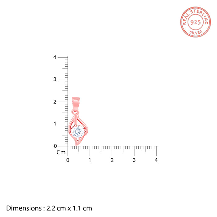 This rose gold pendant has a drop motif with zircon placed at the centre.