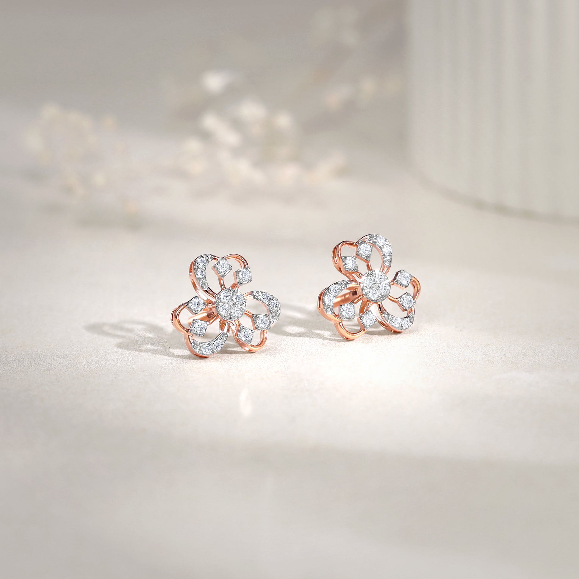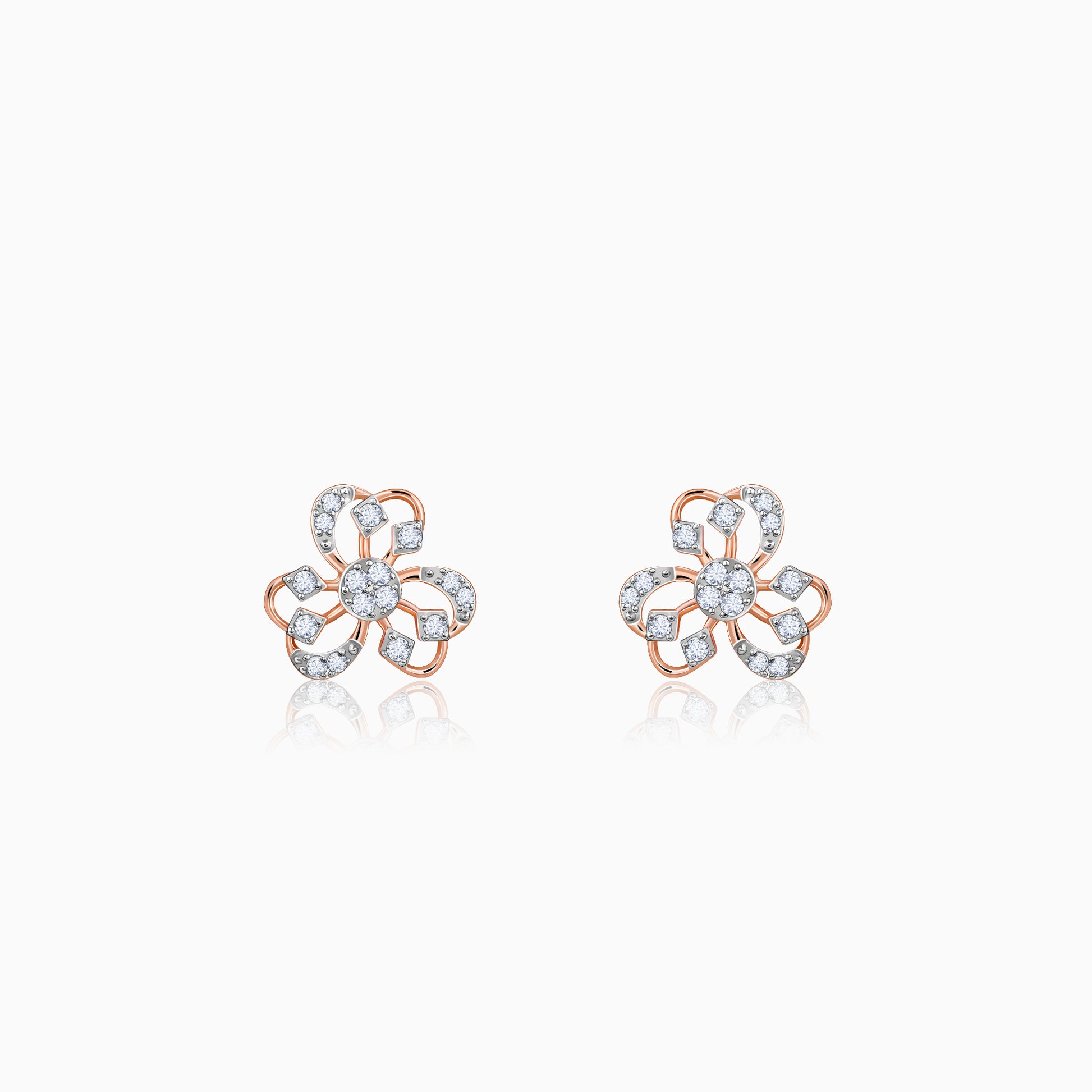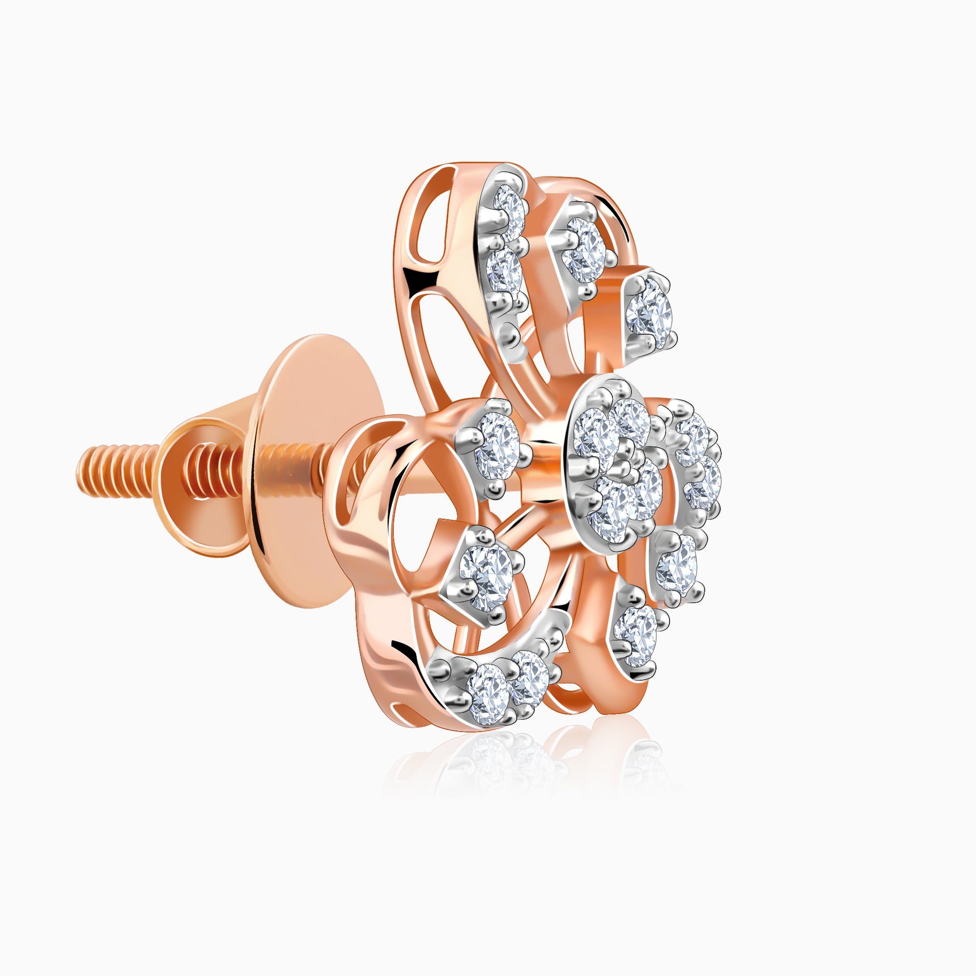 These pure rose gold studs for women feature elegant floral motifs with lab diamonds studded on them.