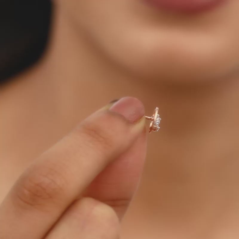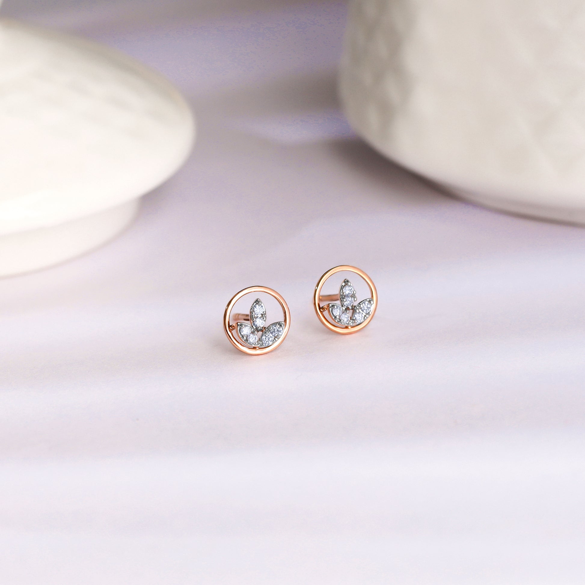 These rose gold earrings have a floral motif with lab-grown diamonds.