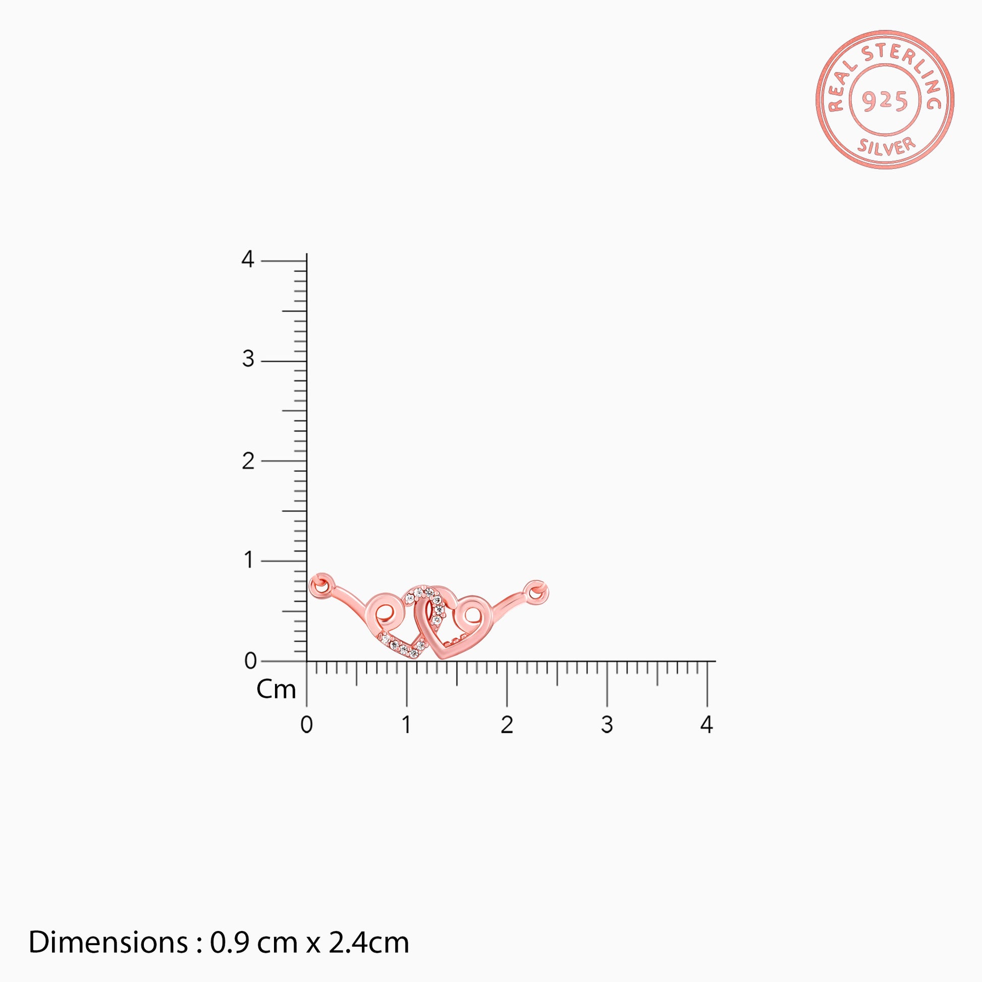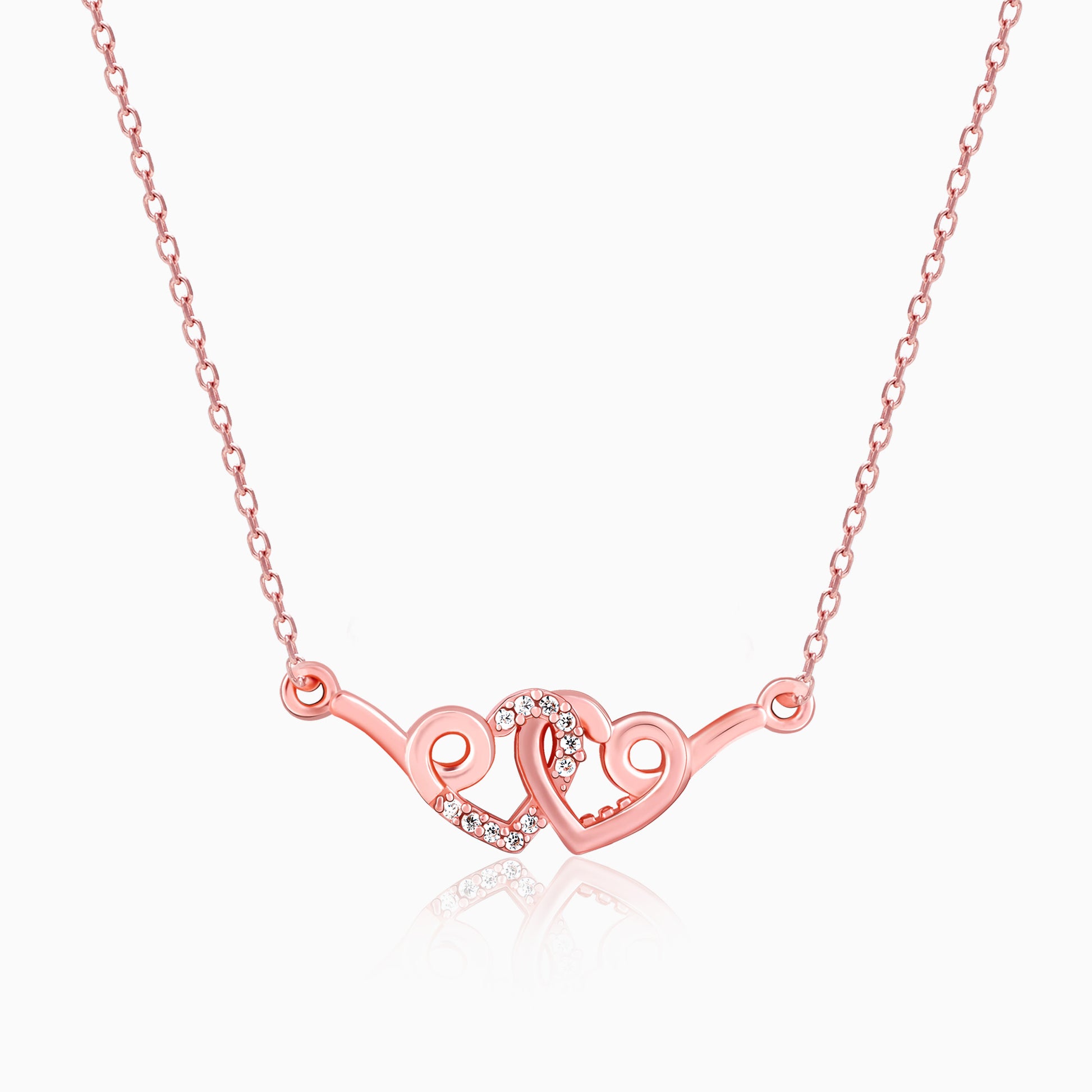 The Rose Gold Pendant features two linked hearts studded with zircons.