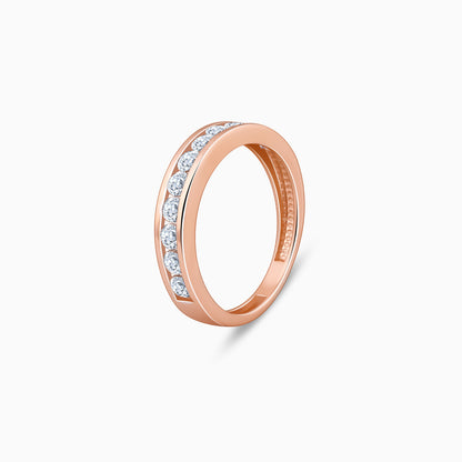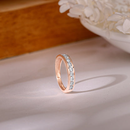 This beautiful ring is made of pure rose gold with a row of lab-grown diamonds set in the middle.