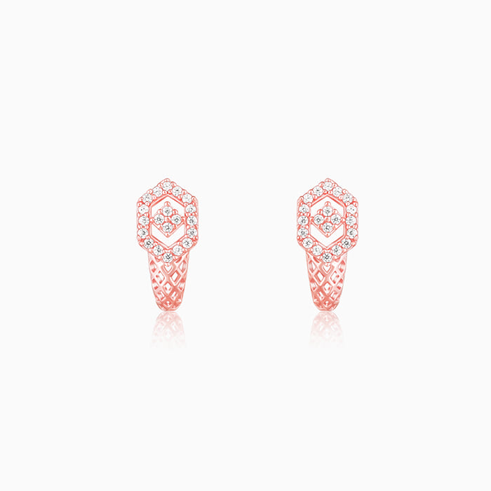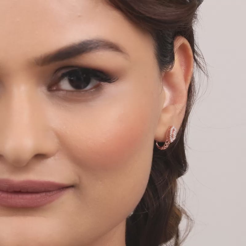 These rose gold pair of earrings have an intricate design set with zircon.